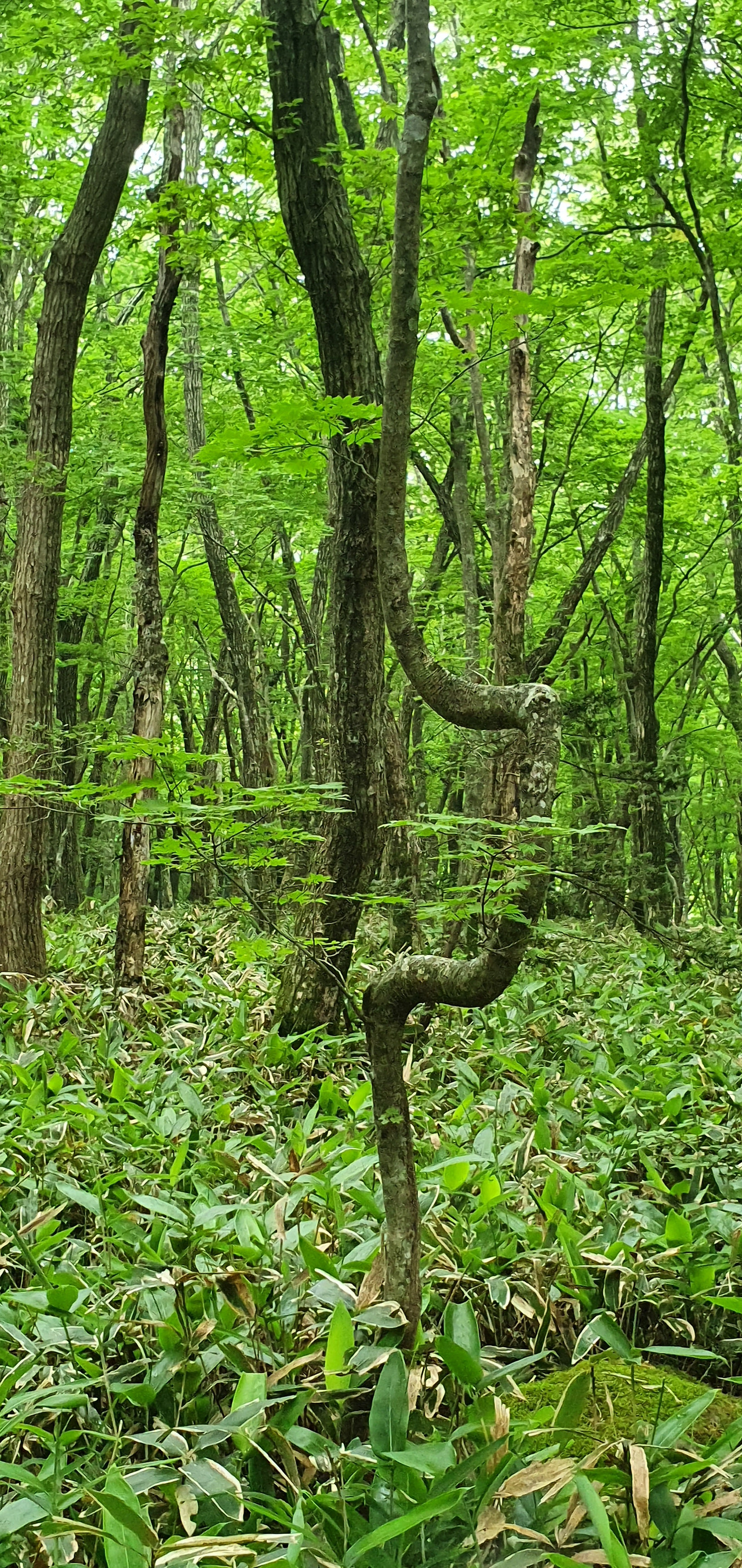어떤 나무는 한글 'ㄷ' 모양을 하고 있다. 사람이 인공적으로 휘게 만든 나무는 많이 보았지만, 자연 상태에서 보는 것은 처음이다. 4번을 꺾여야 이런 모양이 나올 것인데, 참으로 대견스러운 나무이다.