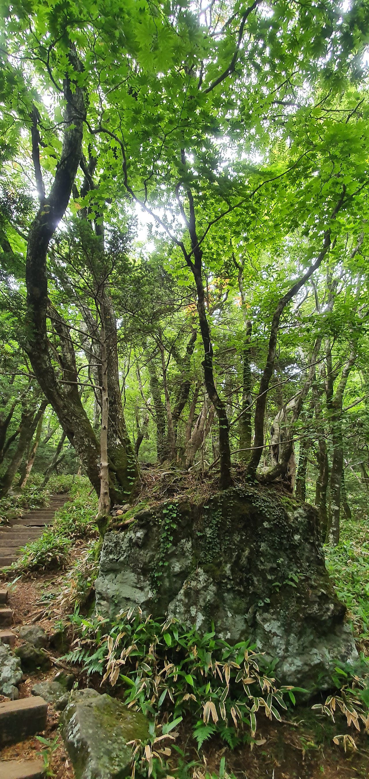 어떤 나무는 바위를 뚫고, 그 위에서 꼿꼿이 자라고 있다. 자그마한 씨앗이 이곳으로 날아와 단단한 바위를 수십 년간 조금씩 조금씩 뚫고 들어가 싹을 피웠다는데 첫 번째 놀라움이 있다. 그리고 한라산의 거친 날씨까지 이겨내고, 살아남았다는 것이 두 번째 경이로움이다. 그리고 이제는 바위에 몇 그루가 군집까지 이루고 있다는데 놀라게 된다.