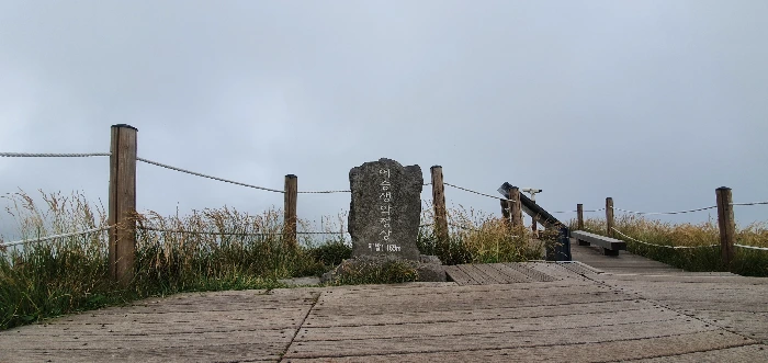 정상에 오르면 어생승악 표지석과, 분화구 내 습지, 그리고 일제시설 세워진 군사시설이 있다.
