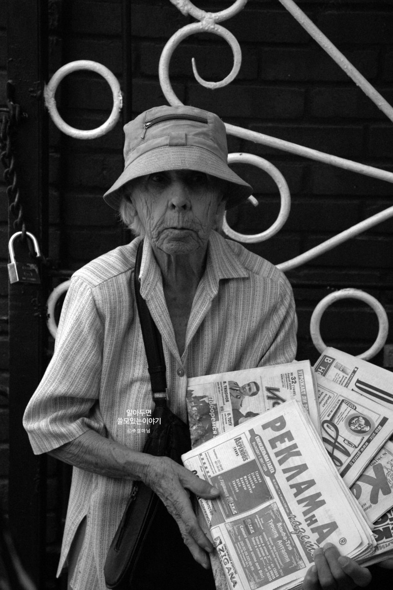신문을 팔고 계시는 할머니를 찍은 사진이다.