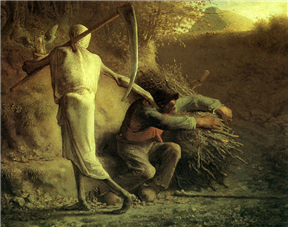 프랑스 화가 장-프랑수아 밀레(Jean-François Millet)의 그림 <죽음과 나무꾼>(Death and the woodcutter)에는 큰 낫을 어깨에 두른 죽음과 나무 가지 다발 옆에 앉아 있는 나무꾼이 등장합니다.