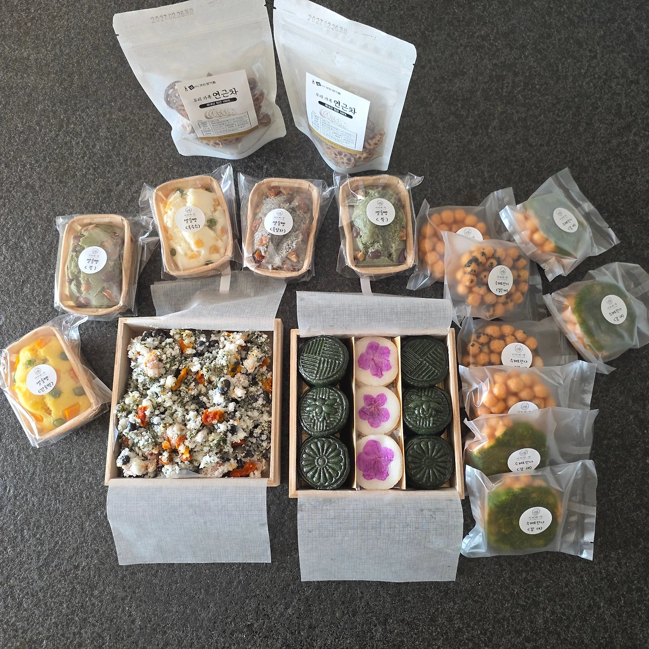 내 말에 이렇다 할 대답은 하지 않고 친구는 나무상자의 뚜껑을 열었다. 쑥 버무리, 쑥절편, 진달래화전이 예쁘게 반짝이고 있었다.