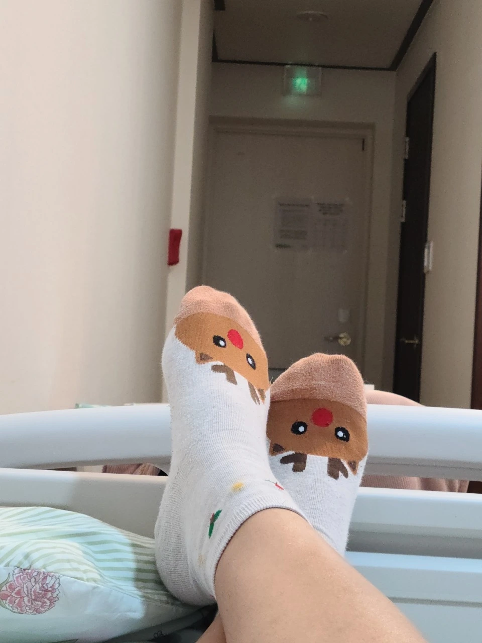 내 발은 루돌프. 비록 병원이지만 나름 크리스마스 분위기를 내봤다.