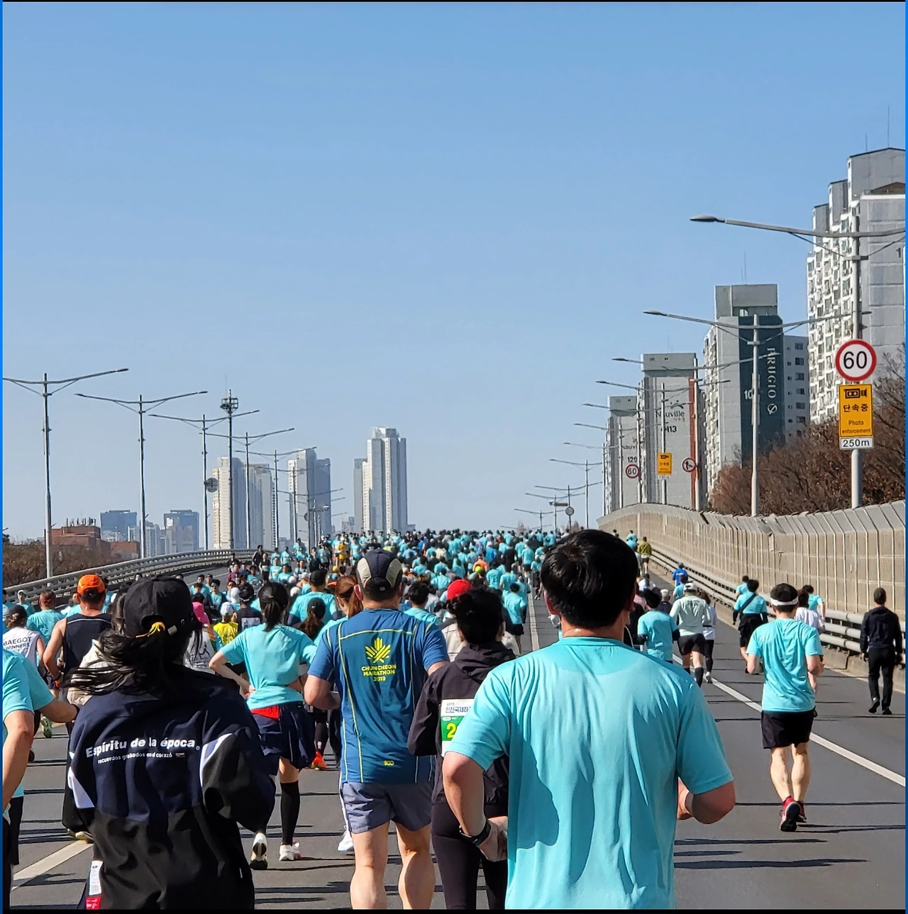 대회당일 아침. 3월이었지만 꽃샘추위가 있어 아직은 살짝 쌀쌀함이 느껴졌다. 레깅스 위에 반바지, 이너 위에 반팔티셔츠를 입고 체온 유지를 위해 바람막이도 하나 준비했다. 운동을 좋아하는 나의 동지 1호에게도 같이 해보자 제안했고 흔쾌히 받아들였다. 그럴 줄 알았다. 1호는 운동에 자신감이 있는 친구였다. 신랑, 나의 동지 1호, 그리고 나, 이렇게 우리 셋은 마라톤 스타트라인에 섰다. 수많은 사람들이 모여서 각자의 방식으로 워밍업을 하고 있었고 처음 경험해 보는 색다른 광경에 기분 좋은 긴장감도 느꼈다. 출발 직전 나는 친구와 신랑에게 파이팅을 외쳤고 무엇보다 마음속으로 나 자신에게 가장 큰 소리로 '완주해 보자. 할 수 있다'를 외치며 응원해 주었다.