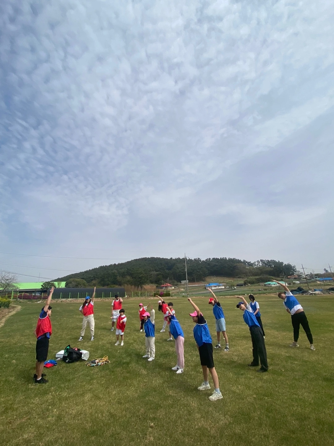 운동회 당일, 조끼까지 입고 팀이 나눠지자 전의가 불타오른다. 손을 포개어 파이팅을 외친다. 생소한 요즘 게임에 머리도 굴려가며 안 쓰던 몸을 움직여본다. 1차 경기 협동공 튀기기는 서로 짠 것도 아닌데 아슬아슬하게 1점 차이로 레드팀이 승리했다.