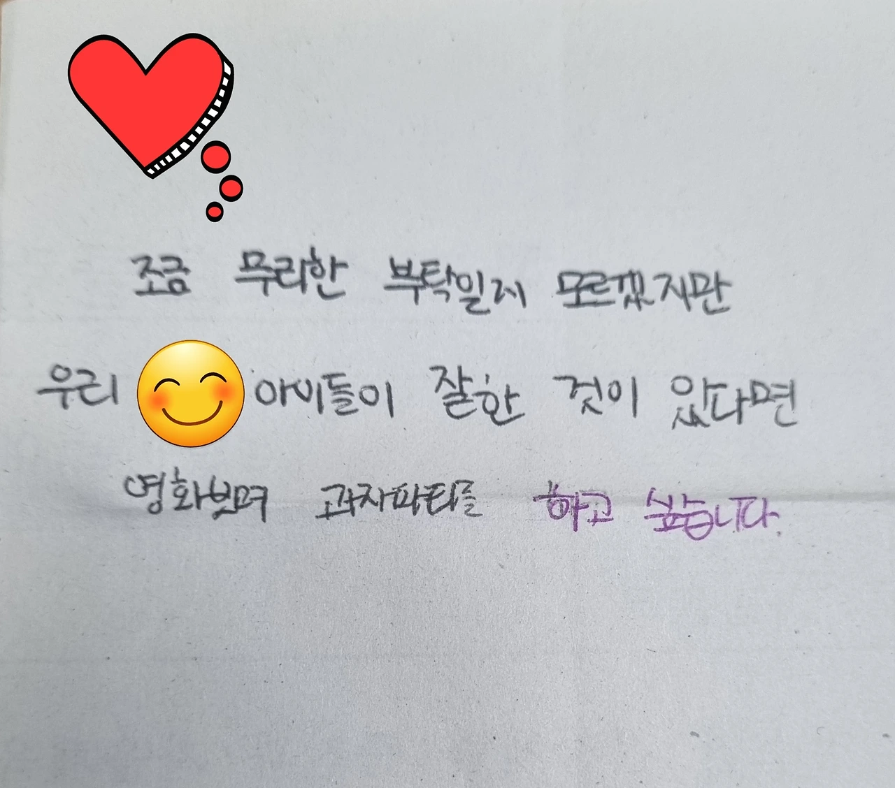 '얘들아, 0반은 매일 배움 공책 쓰고 안 쓰면 남아서 하고 가야 된대.'