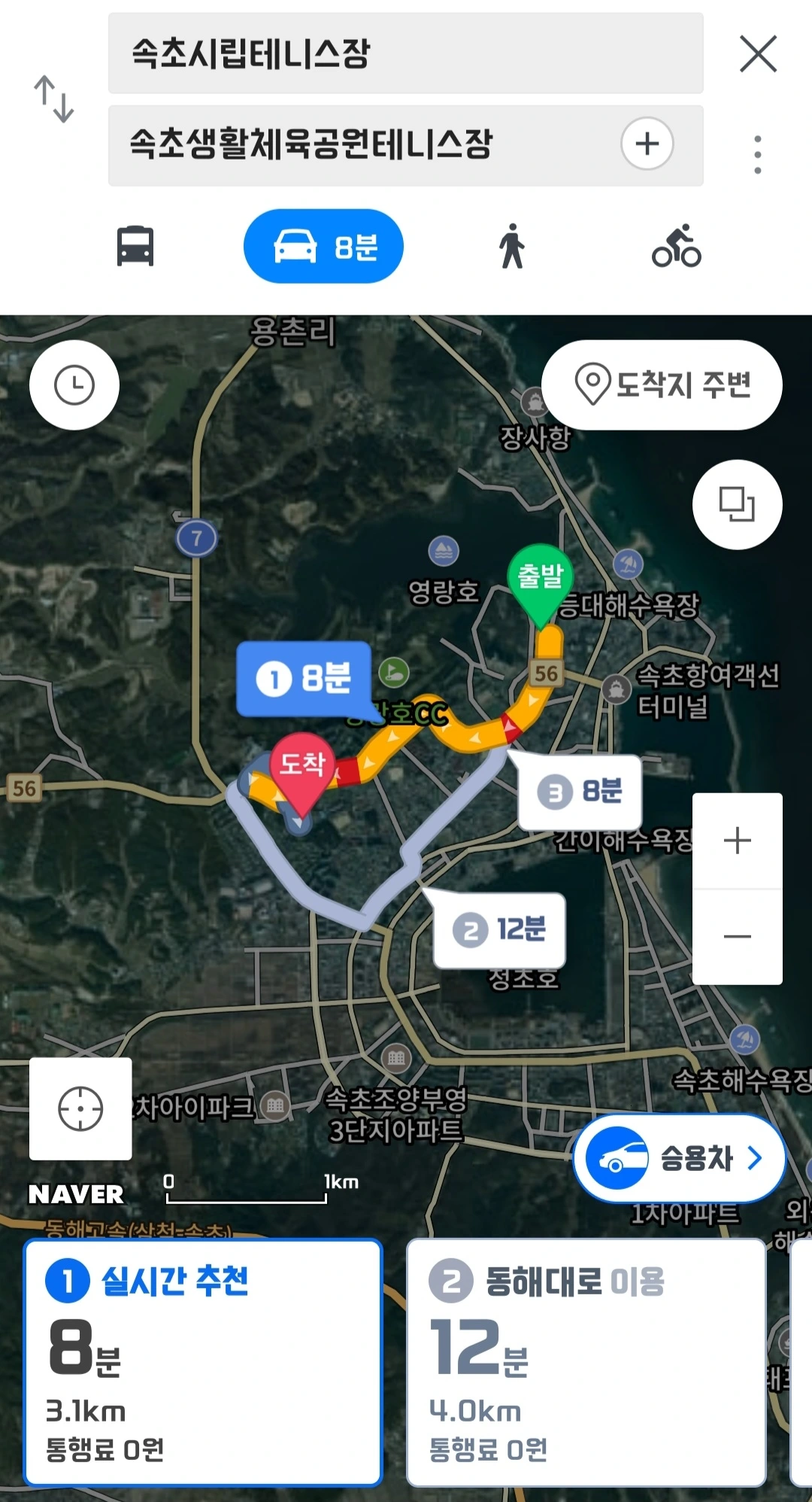 이제와 생각하니 속초에서도 테니스장 이름이 헷갈려서 다른 장소로 갈 뻔했던 게 생각났다.