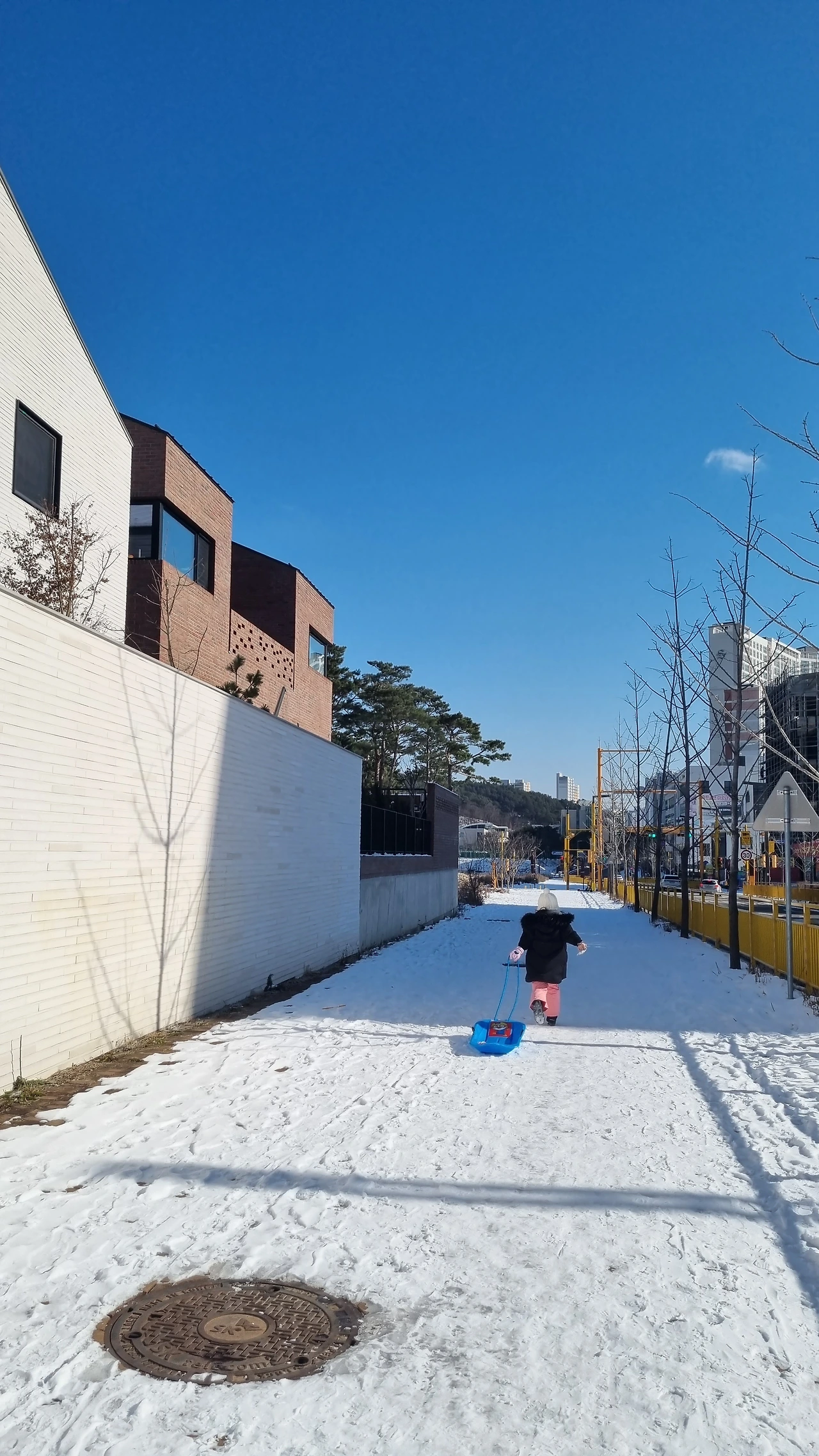 그러나 올해는 사정이 다르다. 몇 개의 동네 공짜 눈썰매 스폿을 보유한 나도 이사를 오니 맥을 못 춘다. 새로 시작해야 한다. 제일 만만한 게 아파트 단지인데 오며 가며 괜찮다 싶은 곳이 있긴 했지만 실제로 타봐야 진가를 알 수 있으니 시간이 제법 걸리는 일이다. 게다가 이사한다고 눈썰매 1개는 아는 동생한테 주고 왔다. 딸이랑 차례차례 타야 한다. 아니면 둘이 한 번에 타던가.