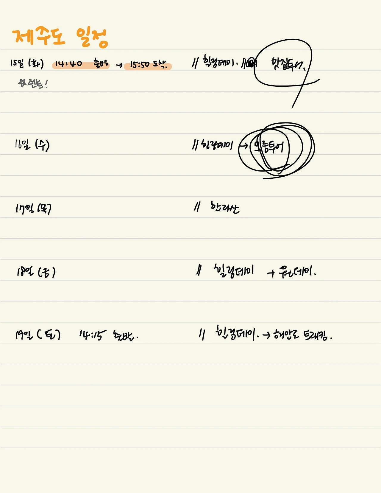 제주도 여행을 가기 전 내가 세웠던 계획표는 이렇다.