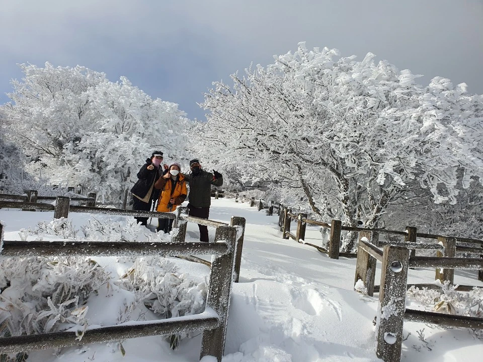 그다음 날 눈이 많이 와서 열릴까 했던 한라산의 문이 열리고 새벽에 1100고지까지 겁도 없이 경차를 끌고 꽁꽁 언 그 길을 올라갔다.
