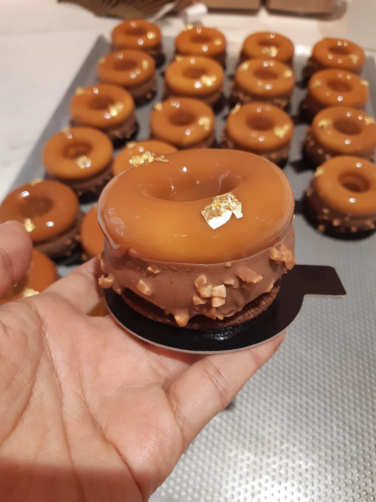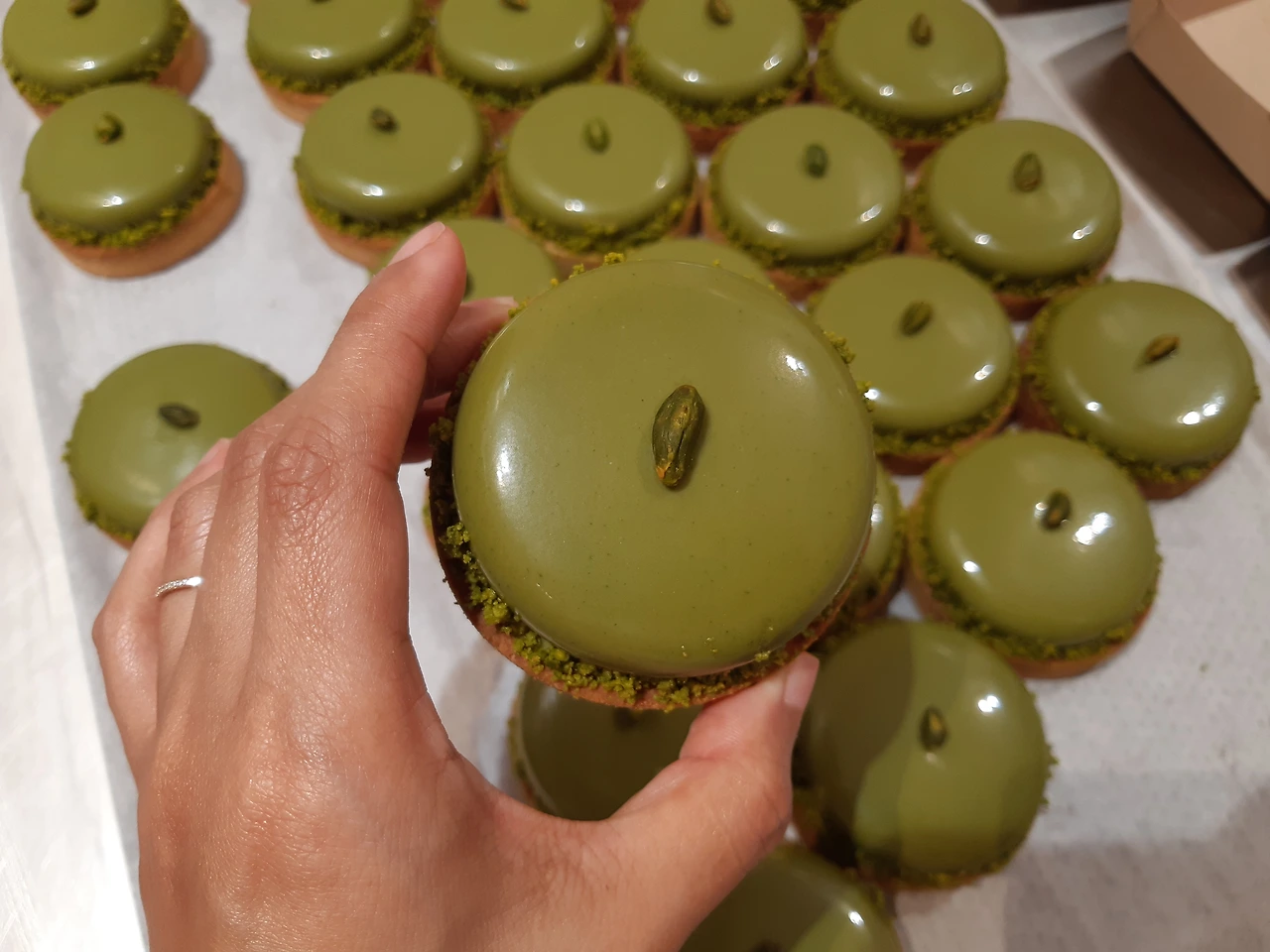 새벽 6시에 도착해서 옷을 갈아입고 제일 먼저 하는 일은 케이크 완성 보조와 포장일이다. 매장 오픈 10시 전까지 쉬지 않고 바짝 일을 해야 그날 판매할 케이크들을 완성할 수 있다. 그간 했던 밑 작업들을 조합해 완성작인 예쁜 케이크들을 만드는 시간이라 가장 신나고 재미있는 순간이다. 그날 만들어진 케이크들 중 가장 예쁜 아이들로 골라 진열대에 진열하는 것도 막내에게 주어진 특권이랄까. 망가지지 않게 조심히 포장까지 마무리하면 어느새 오픈 시간이 다가온다.