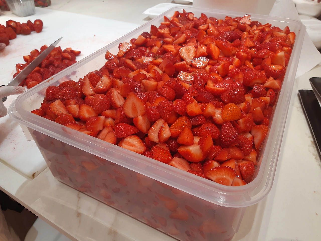 오전 10시 달콤한 30여분 간의 휴식시간이 끝나면 다른 날들에 쓸 재료 밑 작업에 들어간다. 하루는 레몬, 하루는 딸기, 하루는 체리. 살면서 그 많은 양의 과일들을 다뤄 본 적이 없는 것 같다. 손에는 굳은살과 온갖 상처가 생기고 온종일 서서 일해 다리는 천근 만근이지만 달콤한 과일 향을 맡으며 하는 일이라 그런지 고생보다는 왠 호사인 가도 싶다. 고작 몇 개월 전만 해도 특수학교에서 학생들의 채취를 맡으면서 일했었지 하며 딴생각이라도 들라치면 '빨리빨리~'라고 외치는 선배들의 재촉 소리가 들린다.