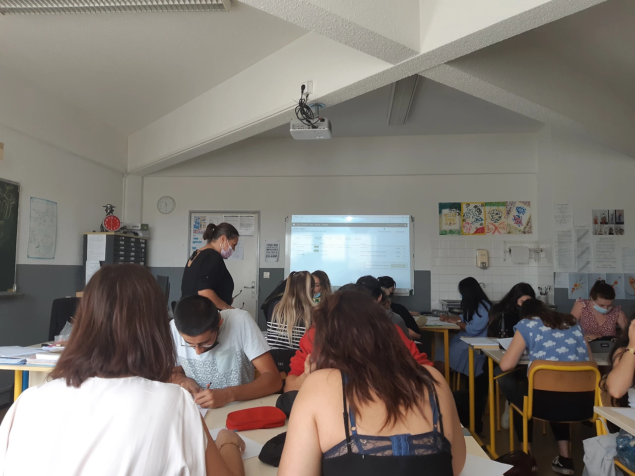 학교에 가는 건 평소보다 3시간 정도 더 늦잠을 잘 수 있다는 것을 의미하기에 나 같은 견습생에겐 휴가기간이나 다름없다. 학교에 도착해 받은 첫인상은 프랑스 학생들은 땅바닥에 푹석푹석 잘도 앉아 있다는 것이다. 내 교실이 있는 한국과는 달리 교사의 공간에 학생들이 수업시간에 맞춰 이동하는 시스템인 데다 종이 울리기 전에는 교실에 미리 들어갈 수도 없다. 개인 사물함도 없으니 무거운 가방을 옆에 두고 복도며 잔디밭이며 앉아 있는 게 당연해 보였다. 어디로 가야 할지 잘 모르겠어서 머뭇거리며 시간표를 찾았다. 내가 들어야 하는 수업으로는 영어, technologie, Gestion(경영), SAE(보건), EPS, Chef Oeuvre, 미술 그리고 실습 등이 있다. 월, 화, 수는 이론 수업을 듣고, 목, 금에는 실습이 잡혀있다. 그리고 들어간 첫 수업! 계약을 좀 늦게 한 탓에 다른 학생들보다 한 차시 정도 늦게 합류했는데, 그러다 보니 학생들이 서로 잘 아는 듯한 모습이었다.