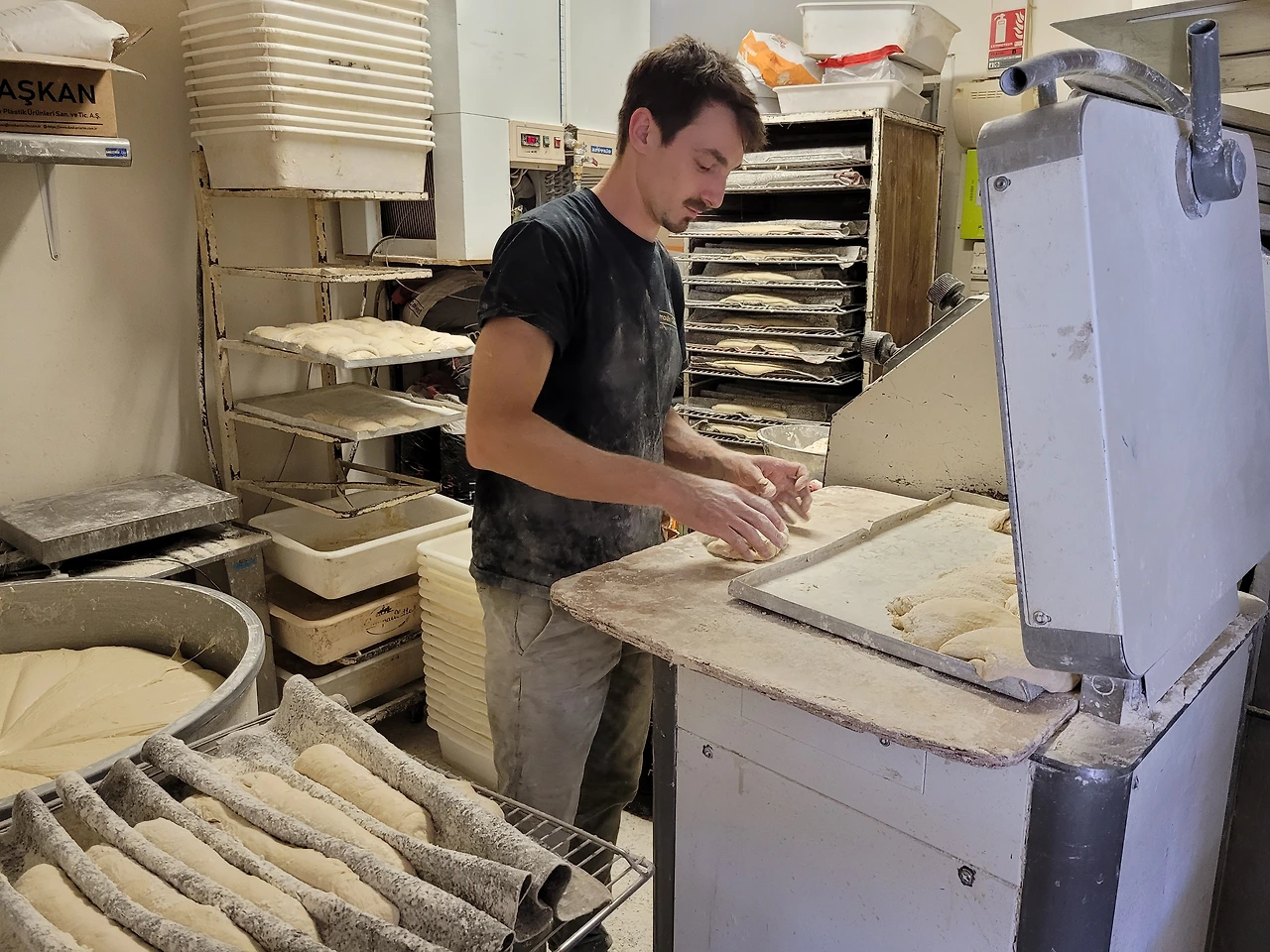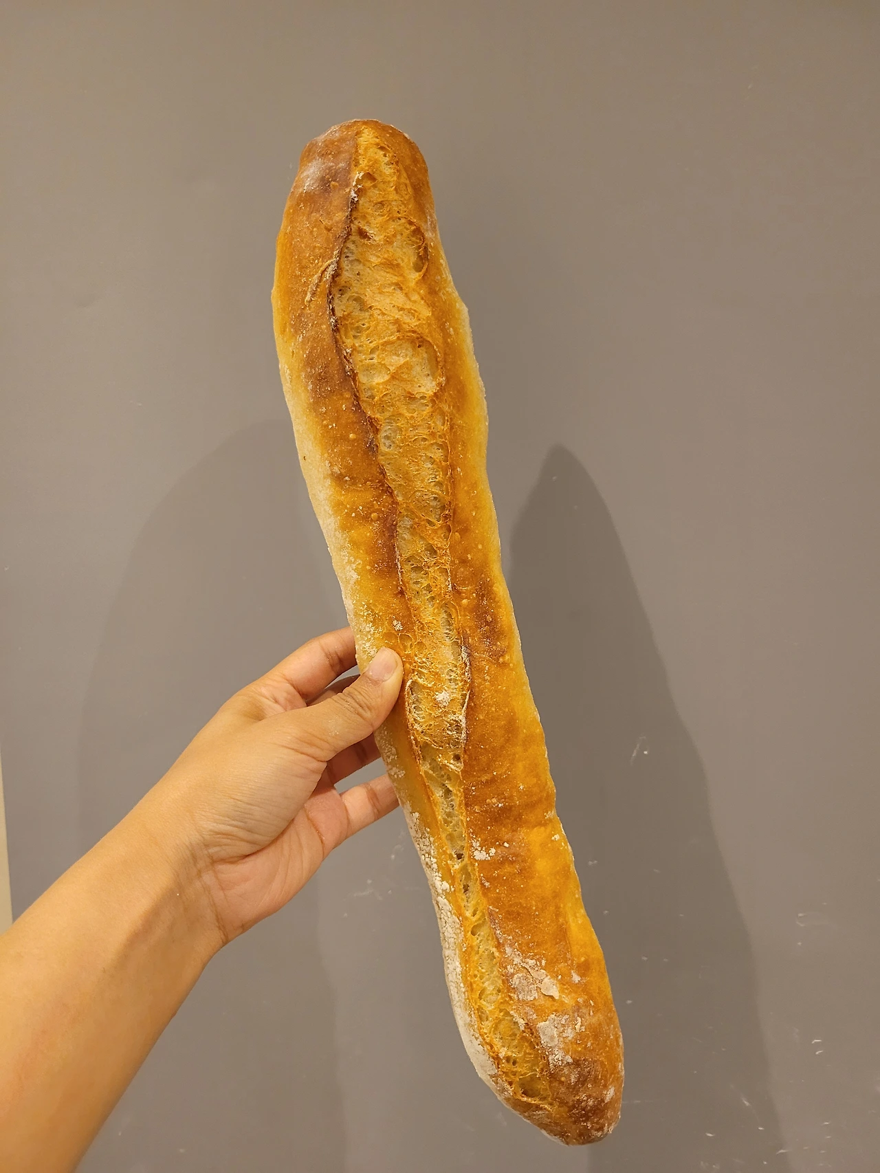 운 좋게 주말 휴무가 잡힌 지난주 금요일. 제과 업무를 모두 끝내고 오후 제빵팀 필립과 쿼헝팅에게 제빵일 좀 경험에 볼 수 있겠느냐고 요청했다. 웃으며 흔쾌히 허락해 준 친구들! 그리고 정식으로 제빵실에 발을 들였다! 우리 매장은 제과팀과 제빵팀이 일하는 공간이 분리되어 있어 지나가다슬쩍 보거나 소금을 얻으러 제빵실에 가보긴 했어도 일을 하러 들어가 본 적은 처음이었다. 내부가 좁고 많이 낡지만 적게는 1명, 많게는 4명이 일하는 곳이며 하루에 몇 백 킬로 이상의 밀가루가 빵으로 변신하는 곳이다. 우리 매장의 한 가지 특색이라면 제빵실이 판매대 바로 뒤에 있어서 나름 오픈 키친으로 고객들이 제빵사들이 일하는 모습을 볼 수 있다. 이에 따른 장점이라면 제빵사들 모두 언어나 행동을 조심한다는 것, 단점이라면 빵 반죽을 가득 채운 그릴을 머리 위로 들고 판매직원들이 있는 좁은 통로를 지나 오븐까지 가는 길이 꽤 험난하다는 것이다. 몇 번 바게트 그릴을 들고 오븐까지 걸어가는데 그릴을 떨어뜨리지 않을까 팔이 후들후들 떨렸다. 왜 그리도 제빵사들 팔이 우락부락 근육질인지 이해가 되었다.