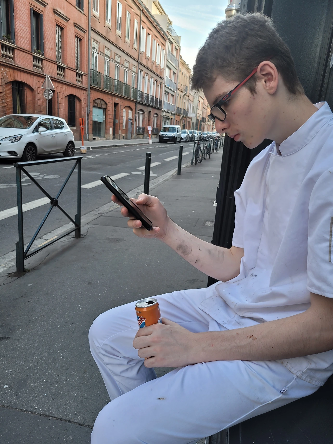 17살 윌리엄은 compagnons du devoir에 다닌다. compagnons은 중세시대 수공업자 길드에서 시작한 전통이 엄청 오래된 학교로 우리나라로 치면 한국전통문화고등학교? 아니 오히려 청학동 예절학교에 가깝다고 해야 하나? 아무튼 엄청 오래되고 자부심도 굉장한 곳이다. 학교 안에서 10대 청소년들이 정장을 입고 생활하고 전국 각지를 돌며 실습을 한다고 한다. 2년 동안 프랑스의 동쪽 끝 안시에서 학교를 다니며 실습은 파리에서 한 윌리엄은 이미 CAP를 취득했다. 지금은 상위 과정인 mention을 공부 중인데, 학교에서 알선해서 우리 업장에서 실습하게 되었다. 공부는 또 툴루즈에서 4시간 떨어진 님이라는 도시에서 공부한단다. 나이보다 경력이나 디플롬을 더 중요하게 여기는 주방에서 윌리엄은 다른 신입 어프헝티들과는 다르게 허드렛일보다는 곧바로 생산일에 들어갔다. 주 3일은 생또방에서 나머지 2일은 다른 업장인 Saint-Sauveur에서 일하기로 했다. 상의부터 하의까지 모두 하얀 유니폼을 입은 그를 보며 제과계의 엘리트 과정을 밟는 사람은 이런 모습이구나 신기하기도 했는데, 생각보다 굉장한 허당이다. 17살이 되며 출퇴근용 스쿠터를 마련했다는 그는 출근 첫날 스쿠터에 손을 데었고, 어제는 퇴근길에 스쿠터에서 떨어져 당분간 일을 못 나오게 됐다. 탈의실에는 그의 하얀 유니폼만 덩그러니 남아있다.