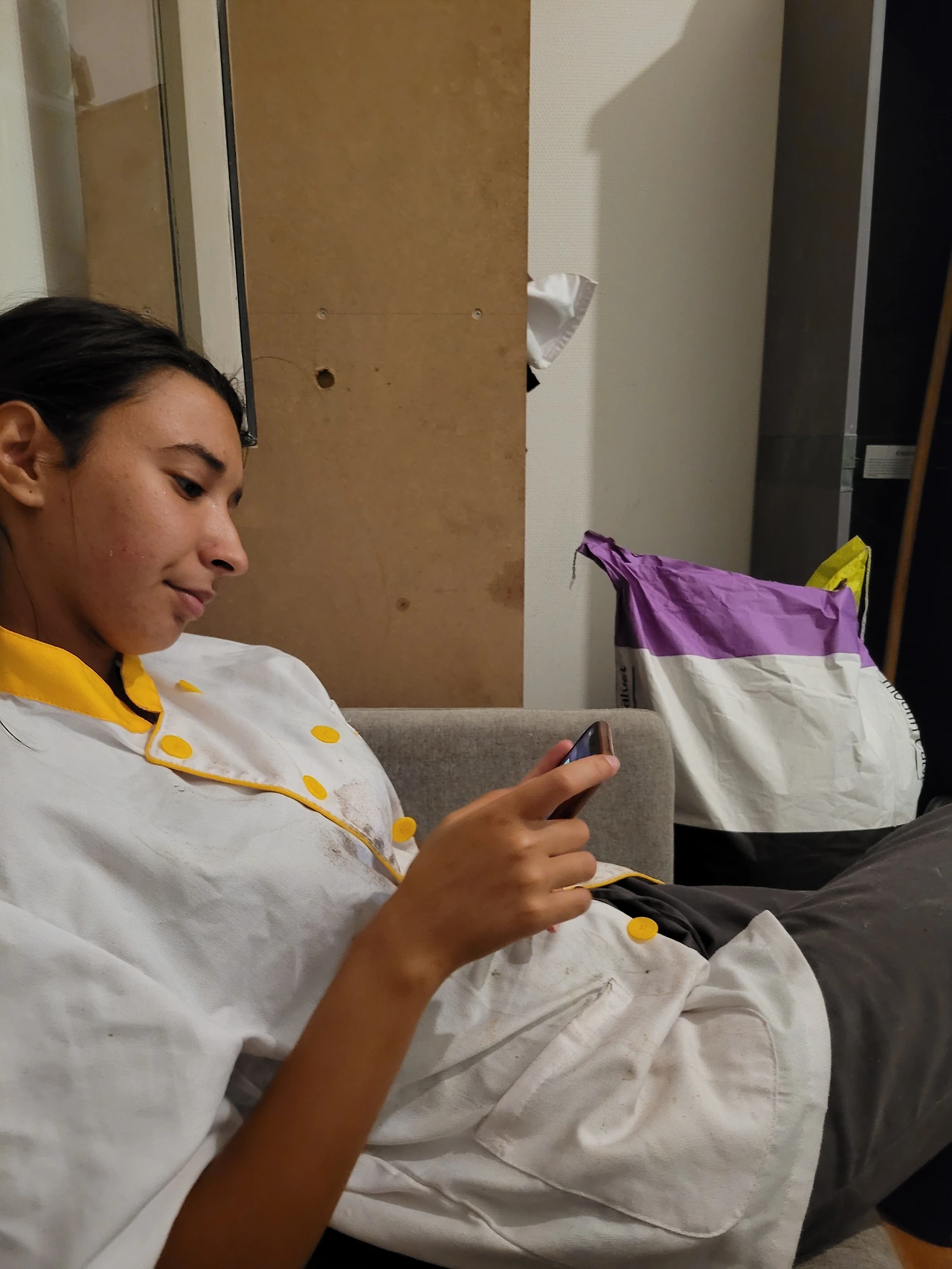 이멘은 뭐라 단정 짓기 어렵다. 2000년대 태어난 19살 소녀. 작년 CAP 시험에 탈락하고 1년간 재수를 하는 중이다. 알제리에서 프랑스 국적 어머니와 함께 3년 전 유학을 왔다. 본인 말로는 코로나 기간 동안 실습을 많이 하지 못하고 불어 시험이 너무 어려워서 시험에 통과 못한 거라고 하는데 실은 잦은 무단결석에 하루도 제시간에 출근하는 적이 없는 터라 셰프 아따나스에게 매일 혼나는 걸로 봐선 학교 생활도 열심히 하지 않았던 게 아닐까 싶다. 하지만 재학생 중 90퍼센트 이상은 합격한다는 CAP 자격시험에 탈락하는 그 10프로의 가능성을 보여줘서 나를 긴장케 한다. 나보다 불어도 훨씬 더 잘하는데, 이론 시험에 떨어지다니... 방학 동안 미처 하지 못한 이론시험 준비도 마음 잡고 퇴근 후에 해야겠다 마음먹었다. 이멘이 지난 2년 동안 일한 제과점은 거의 모든 제품을 냉동된 걸 녹여 팔기만 했던 곳이라 크렘 파티시에를 만들어 본 건 학교에서가 전부고, 에클레어도 우리 제과점에 와서야 처음 만들어봤다고 한다. 2년 경력이 있지만 서툰 게 많은 이멘을 보고 가만히 있을 리 없는 니콜라스의 잔소리가 너무 싫은 그녀는 쉬는 시간마다 가족에게 짜증이 가득한 아랍어로 음성메시지를 보낸다. 과연 1년 동안 잘 지낼 수 있을까?