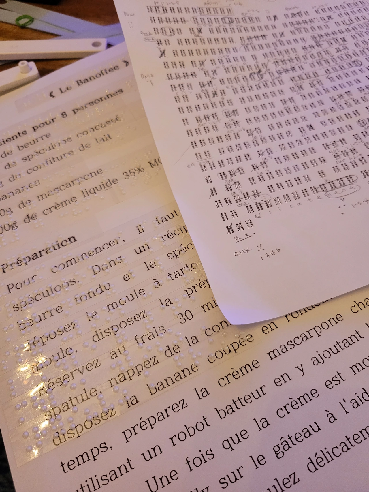 그리고 한 가지 근황을 덧붙이자면, 용기를 내어 툴루즈 시각장애인 연합회 사무실을 방문했다. 국가 공인 파티셰가 되면 시각장애인들을 대상으로 제과 아뜰리에를 열고 싶다는 의욕을 내비쳤다. 짬짬이 불어 점자 공부도 조금씩 시작했다. 이번 달 목표는 바노피 케이크 점자 레시피 완성하기! 특수교육과 파티셰의 길. 둘 다 가고 싶은 건 욕심이겠지만... :)