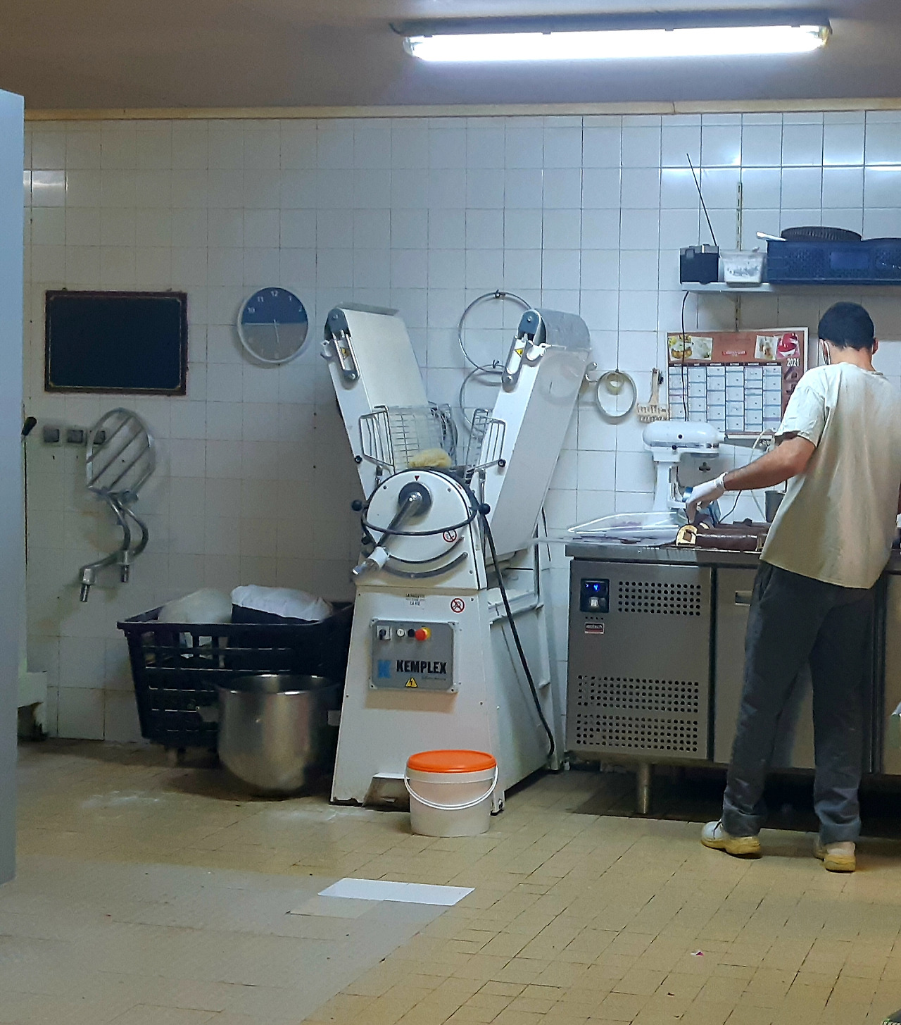 내가 미끄러진 부분은 사진에서도 볼 수 있듯이 미끄러운 타일이었다. 주방바닥에서는 절대 쓸 수 없는 마감재료인데, 비용을 아끼기 위해서였는지, 수리를 하면서 실수로 마감처리를 잘못했는지 딱 저 부분만 유독 미끄러웠다. 미끄럼방지 신발을 신고 일하지만 저 미끄러운 타일에 밀가루나 조금의 물이라도 묻어있을 때면 주방 신발도 소용이 없었다. 하루에 몇 번이고 넘어질뻔한 상황이 연출됐다.