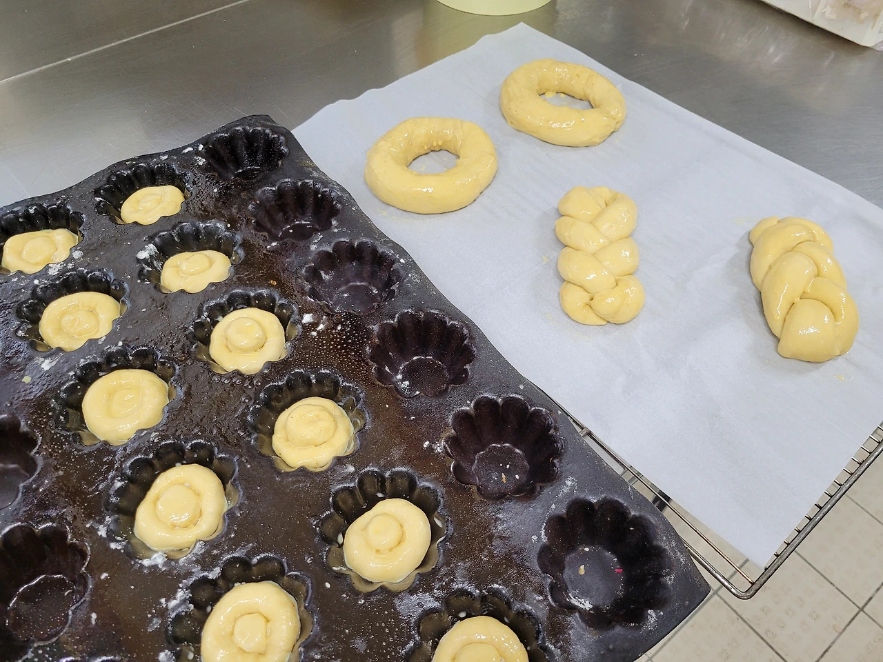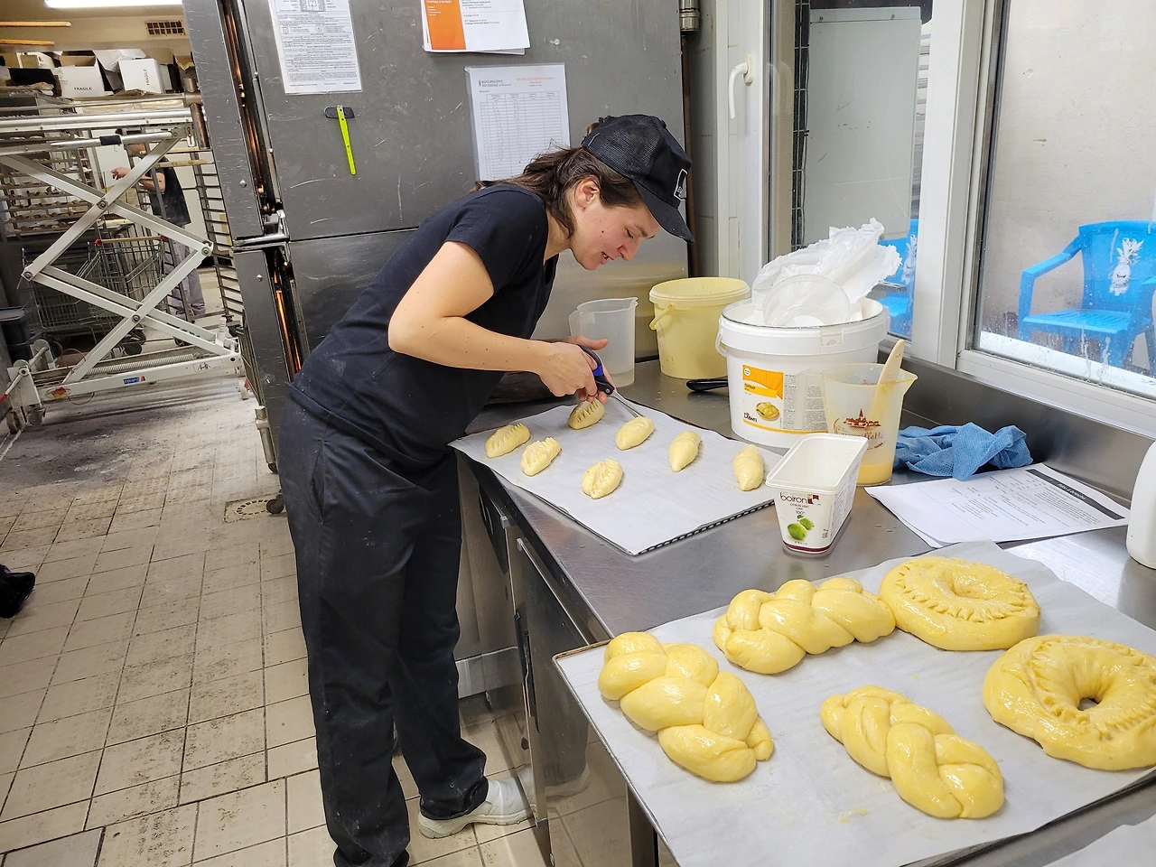 지난번 실기 모의시험에서 받은 충격과 실수를 바탕으로 특별 보충수업을 갖기로 했다. 브리오쉬나 뺑오레는 2년 전 실기수업 이후로 일하면서 다뤄보지 않은 품목이라 자신이 없어서 이 부분을 먼저 해보기로 했다. 지난 토요일 11시 퇴근 후 저스틴과 함께 지난여름에 일했던 Saint-Sauveur에서 말이다. 굳이 지금 일하지 않은 곳에까지 가서 나머지 공부를 하는 까닭은 새로운 장소가 주는 낯섦에서 오는 긴장감이 좋았고, 지금 일하는 곳은 모두가 같은 시간에 퇴근을 해서 궁금한 게 있거나 막혔을 때 물어볼 사람이 없기 때문이기도 했다. Saint-Sauveur에는 제레미가 오후에 남아 빵을 굽기 때문에 의지할 수 있다. 제레미는 나이는 나보다 한창 어리지만 경력이 많은 유능한 제과제빵사이다. 매번 술자리에서 농담이나 하던 친구인데, 옆에서 지도해 주는 걸 보니 경험도 많고 팁도 풍부한 재능 있는 친구 같다. 나보다 조금이라도 더 잘 알면 그가 바로 스승인 셈!