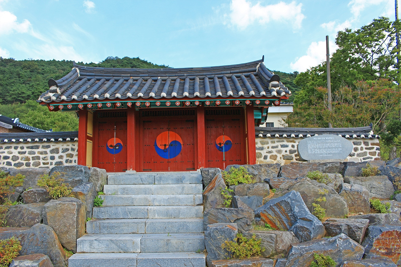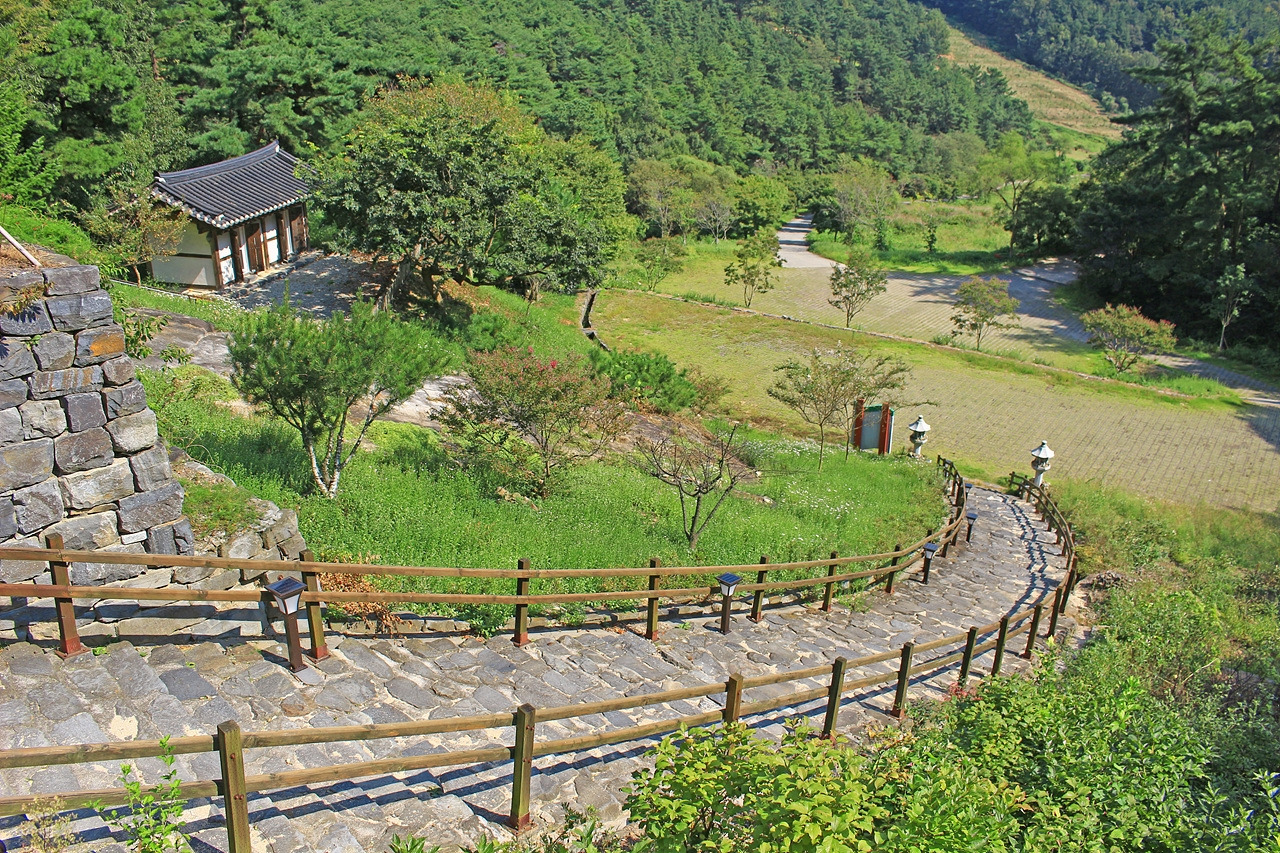 임천 초등학교를 지나 탐방로 입구에 들어섰다. 탐방로는 마을 상단부에서 시작되는데 여기서 바라보는 마을 풍경이 참 예쁘다. 알록달록 빨갛고 파란 지붕들이 돋보인다. 시골 마을답게 논밭에 심어진 곡식이나 채소로 가득했다. 경사진 탐방로 한편에는 목은 이색 선생의 영정을 모신 사당이 있다. 아쉽게도 내부 관람은 불가했다.