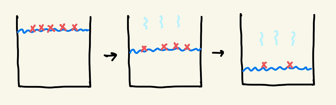 우울증이 좋아지는 과정을 구체적으로 그림으로 표현해 보았는데 순전히 내가 느끼고 생각한 것이라 과학적인 증명은 없다. 그러나 내가 느낀 그대로 그려보았다. 한창 우울증과 공황장애로 혼란한 나날들을 보냈을 때의 나의 감정의 우물은 짙은 파란색 물로 가득 차 찰랑찰랑거렸다. 속이 거의 비치지 않는 흑빛의 물이 거의 우물 밖으로 넘쳐흐를 듯 아슬아슬한 모습이었다. 그것이 지금은 조금씩 휘발되어 어느새 우물의 반 정도까지 남았다. 내 감정을 깊게 파헤쳐보고 나 자신을 이해하는 시간을 가지는 동안 많은 우울한 감정들이 휘발되었다. 하지만 그 사이에도 빨간색 치명적인 어떠한 스파크가 있다. 그 스파크는 내가 심하게 치욕감을 느꼈다거나 깊은 좌절감, 자괴감 등을 느꼈던 감정이다. 이것은 휘발되기에는 너무 강력해서 물 위에 둥둥 떠 다닌다. 이것을 없애려면 적지 않은 노력이 필요하다. 그것이 내가 우울증과 행복에 관한 책을 읽고 브런치에 글을 쓰는 이유다. 내가 쓴 글을 읽고 또 읽다 보면 둥둥 떠 다니는 치명적인 감정들을 이겨낼 수 있다고 생각했기 때문이다. 어느 정도 효과는 있었지만 그 치명도에 따라서 시간이 필요한 것들이 있다. 이러한 것들이 아직까지도 내가 힘든 이유이기도 하다.