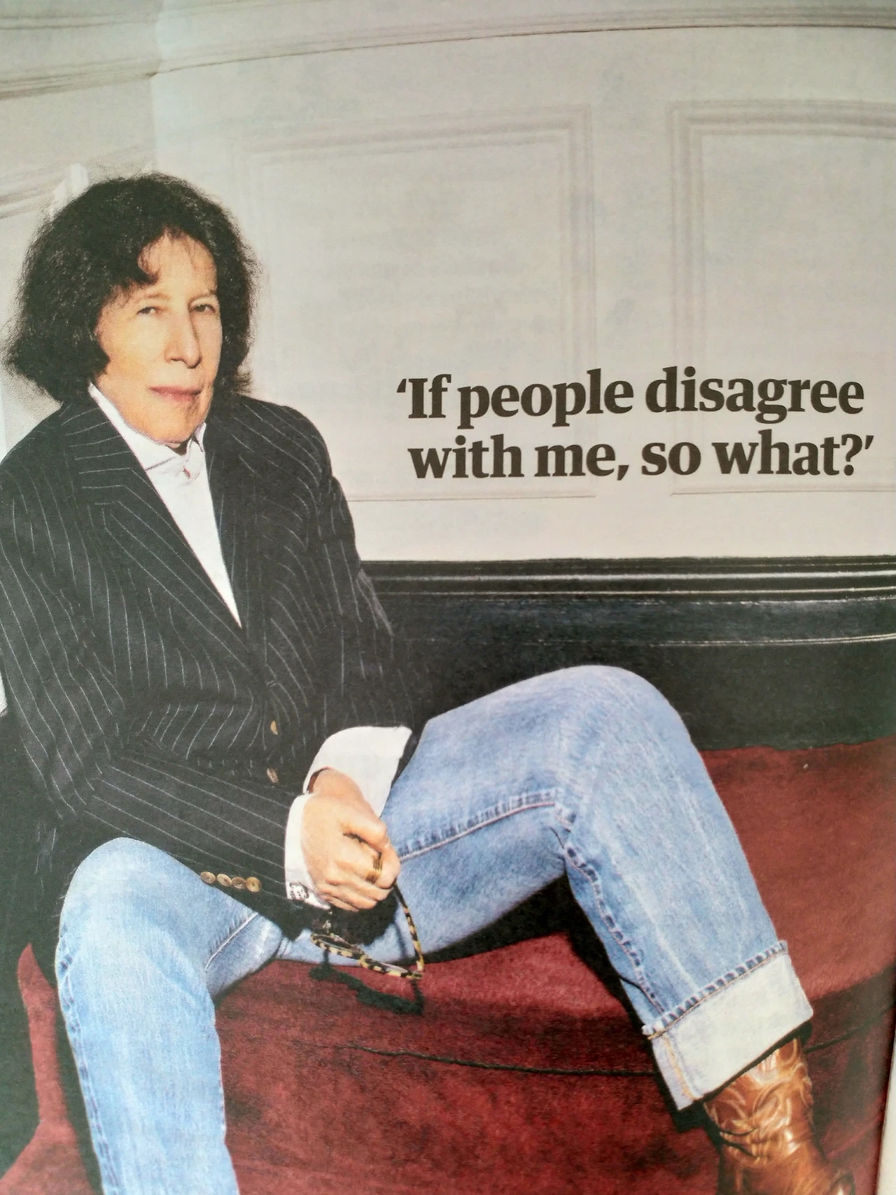 이로부터 얼마 후, 집에 한 달 동안 묵혀뒀던 가디언지의 책 리뷰 잡지에서 그 범상치 않은 인물을 다시 발견했다. 가디언지의 주말지는 기본 신문에 부록처럼 매거진을 따로 제공한다. A4보다 살짝 작은 사이즈에 26페이지로 구성된 얇은 책 리뷰 잡지에 그 사람의 인터뷰가 커버스토리로 실렸다. 그녀의 이름은 프란 르보위츠 (Fran Lebowitz). 그녀는 영화계의 거장 마틴 스콜세지의 친구인 70세의 뉴요커이다. 그녀가 주연으로 나선 마틴 스콜세지와의 두 번째 다큐 <도시인처럼( Pretend It's a City)>이 이미 넷플릭스에서 큰 성공을 거둔 듯했다. 이 기세를 몰아 40년 전에 출판된 그녀의 에세이집 두권 <Metropolitan Life>와 <Social Studies>를 하나로 엮은 <The Fran Lebowitz Reader>가 영국에서 최근 출간됐다. 그래서 인터뷰가 실린 듯했다.