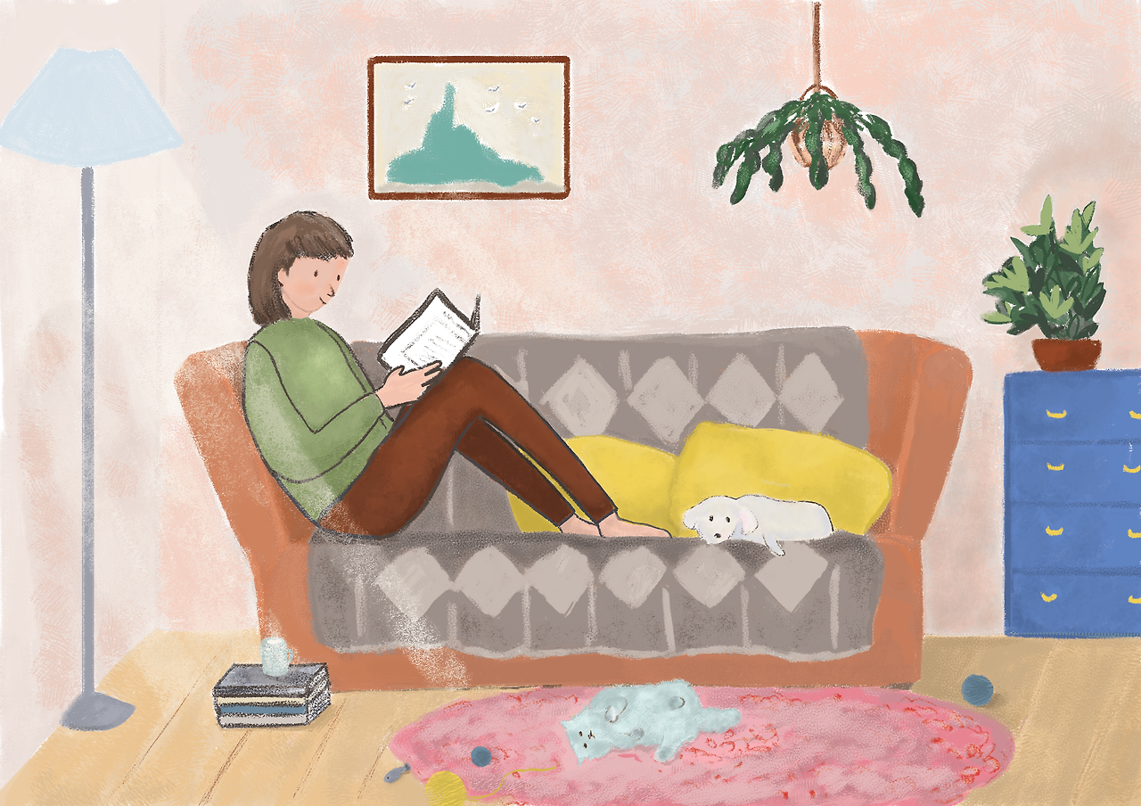 그림과 글을 통해 표현되는 것은 분명히 달랐다. 그림은 글이 다 전달하지 못하는 내 감정이나 느낌을 압축적으로 표현할 수 있다. 말처럼 글도 구구절절 길게 쓰는 걸 싫어하는 나에게 어쩌면 그림은 나를 표현하기 더 적합한 매체일지도 모르겠다. 글이 문단이라면 그림은 주제문 같다고나 할까. 그리고 캔버스에 내가 창조한 세계가 한눈에 펼쳐지니깐 그리면서 신기하고 재미있다. 캔버스 위에는 내가 원하는 인물과 풍경, 소품과 도구를 골라 연출해 나의 세계를 만들 수 있어 통제감을 느낀다. 그리고 이것은 팬데믹으로 대부분을 통제할 수 없던 현실에 돌파구를 마련해 줬던 것 같다.
