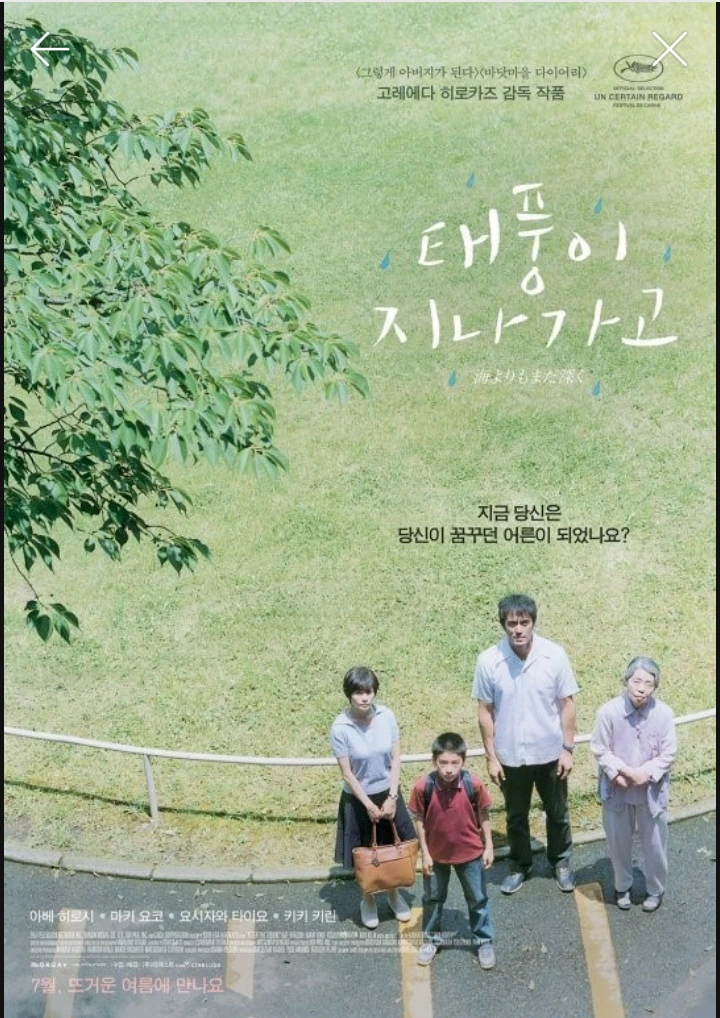 그리고 왠지 제목이 끌리는 <태풍이 지나가고(After the Storm)>라는 영화를 클릭했다. 그러고 보니, 감독이 <어느 가족(2018)>의 고레에다 히로카즈였다.