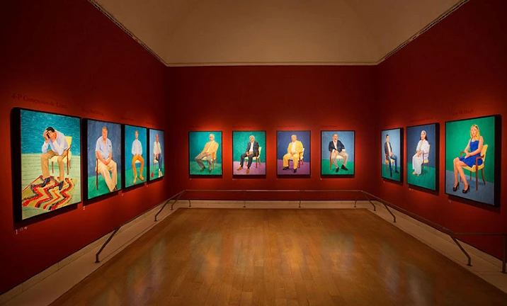 80세를 바라보던 데이비드 호크니가 2013년부터 2016년까지 82명의 사람들을 작업실에 초대해 그린 초상화전이다. 그는 한 작품당 삼 일 간, 총 스물두 시간을 작업해서 자신의 지인을 비롯한 주변 인물들을 그렸다. 11살 어린이부터 90대의 노인까지 누구나 똑같이 하루에 여섯 시간씩 의자에 앉아 그의 모델이 되었다. 보통 화가들이 자신이 그릴 대상의 사진을 보고 초상화를 그리는 경우가 많다고 한다. 하지만 데이비드 호크니는 자신의 눈 앞에서 생생하게 호흡하고 있는 인물들을 직접 보고 작품을 완성했다. 그는 모델이 된 지인들을 관찰하며 그들의 모습을 새롭게 발견하려 했다. 초상화뿐만 아니라 전시회에 소개된 정물화 작품에서도 알 수 있듯이, 작가는 그림을 그리면서 자신과 관계를 맺고 있는 주변 세계와 무언의 교감을 이루었다.