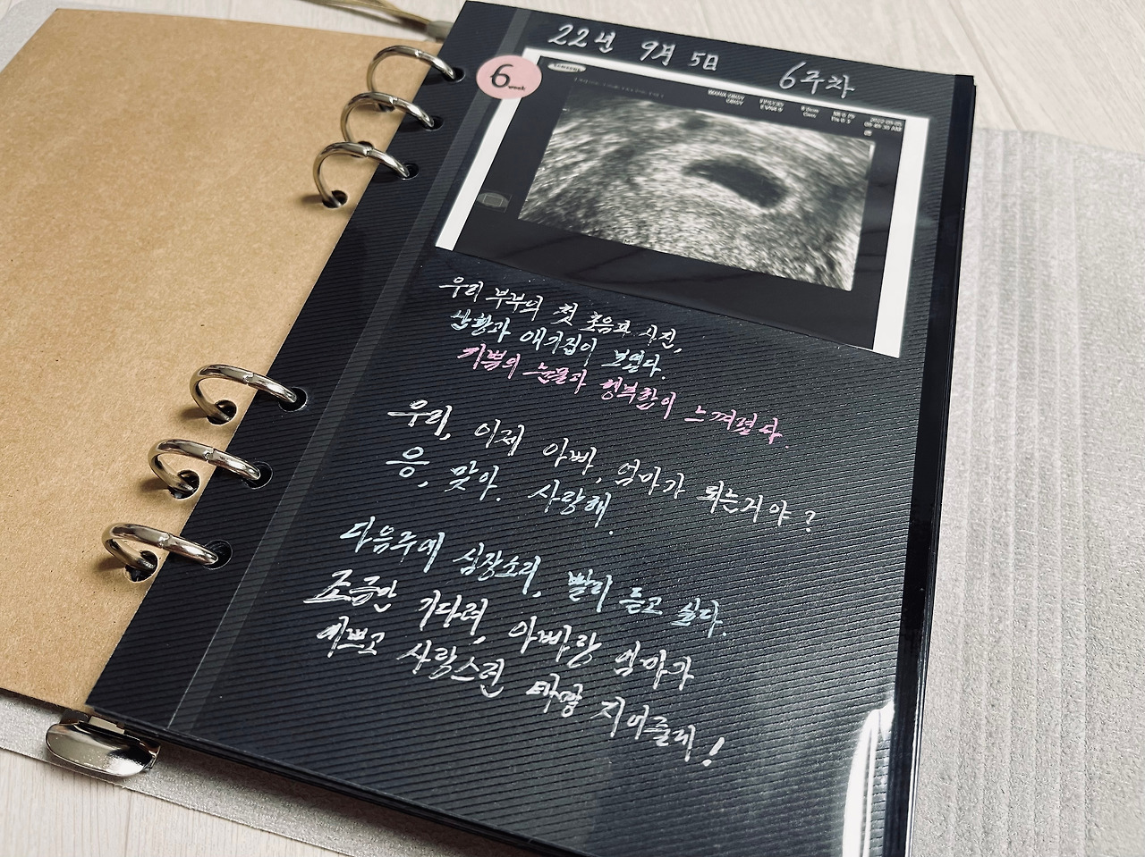 보건소에서 모든 용무를 마치고 집으로 향했다. 많은 일을 했지만 신기하게도 전혀 피곤함을 못 느꼈다. 벌써 아빠의 힘을 느끼고 있는 것 같았다. 저녁을 먹고 우리 부부는 서로 앉아서 초음파 사진을 보여 이런저런 이야기를 했다. 그간 임신을 위해 노력했던 일들이 생각나면서 살며시 눈가가 촉촉해짐을 느꼈다. 나는 워낙 감수성이 예민 한터라 '나 잘할게'라는 말을 하면서 눈물이 났다. 우리 아내는 그런 나를 안아주었다.