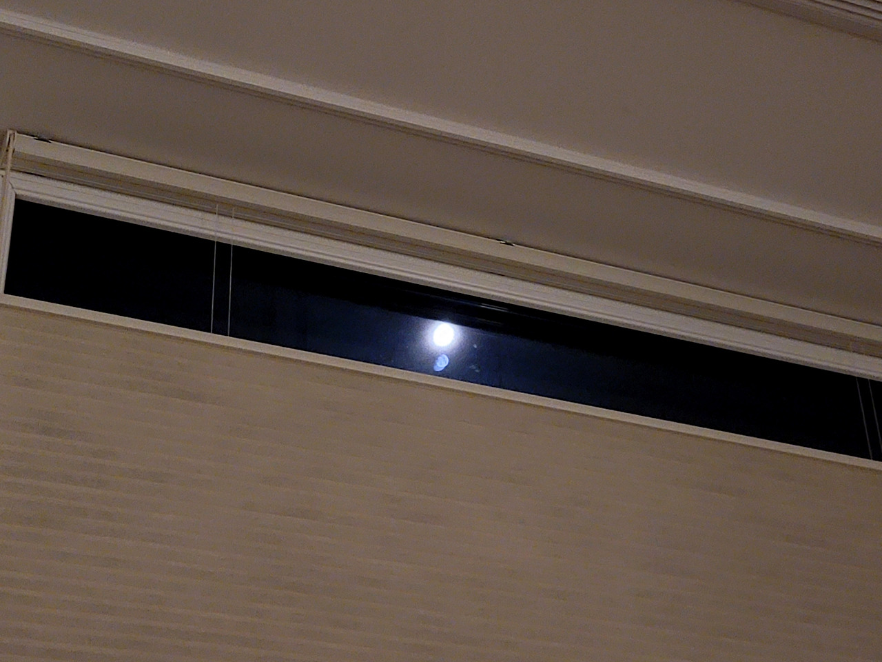 분명 졸음이 몰려왔는데 왜 이러지 싶었다가 몸을 돌리자 넓은 창 중 블라인드가 미처 가리지 못한 한 뼘 사이에 달이 떡하니 보인다.