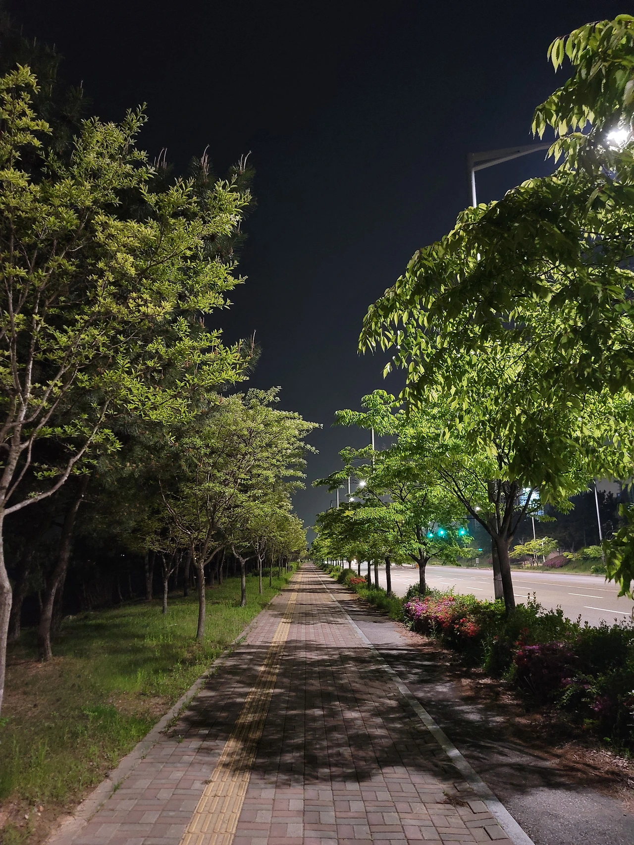 산책길엔 비슷한 간격으로 나무들이 쭉 늘어서 있다.