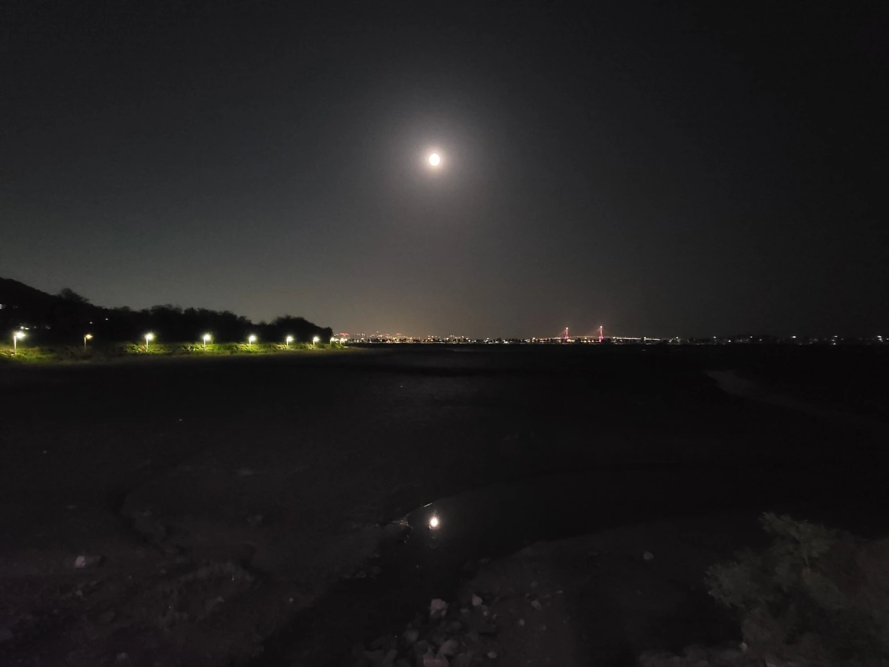 결국 물에 비친 달은 돌아오는 산책길 옆 갯벌의 좁다란 물길에서나 찾을 수 있었다.