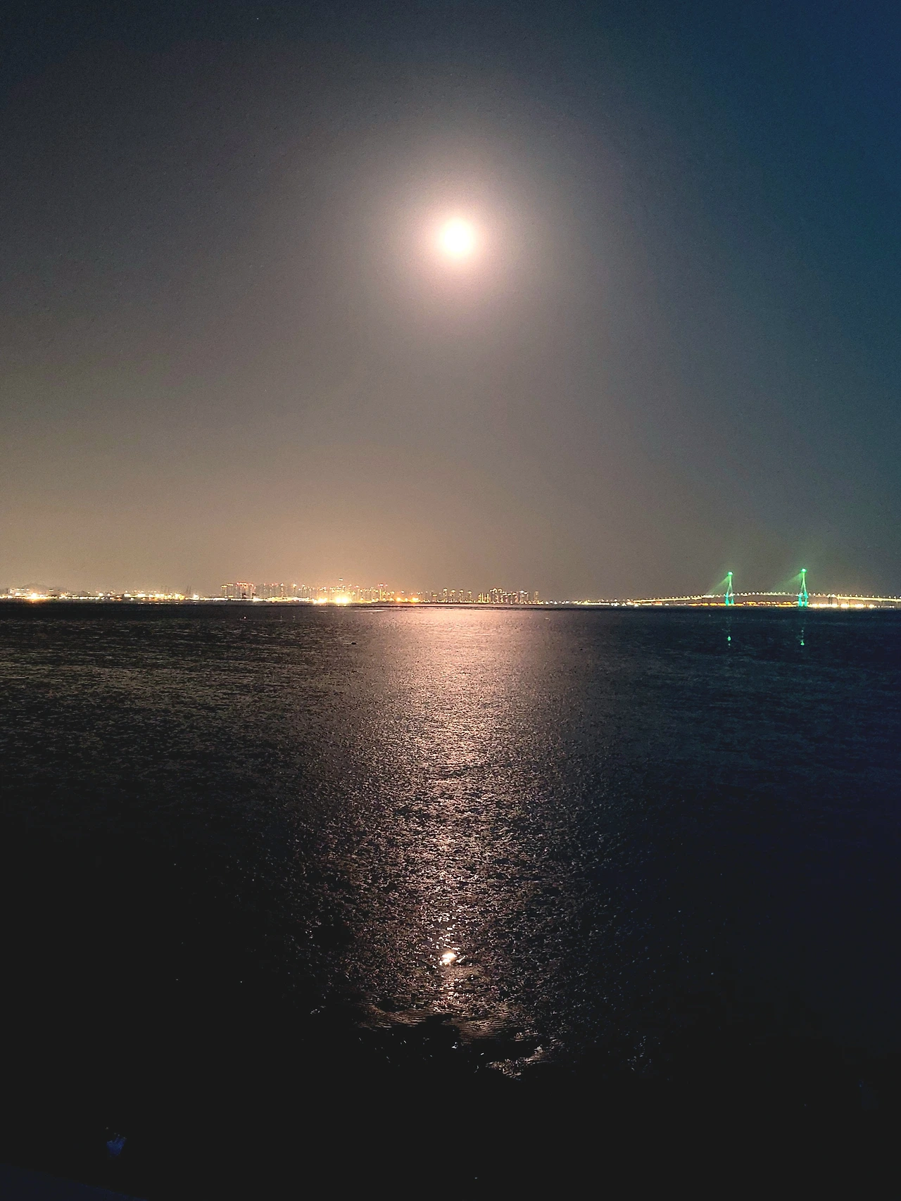 어제 보름달을 발견하고는 바다에 비친 달사진을 찍고 싶어서 산책길 끝 전망대에 올라 카메라를 들이댔다.