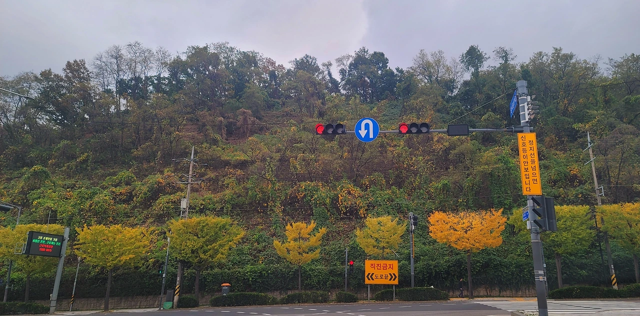 병원으로 가는 길 중 막다른 도로가 있었는데 좌회전 하기 직전 내 앞에서 빨간 불로 바뀌어 한참 서 있게 되었다.