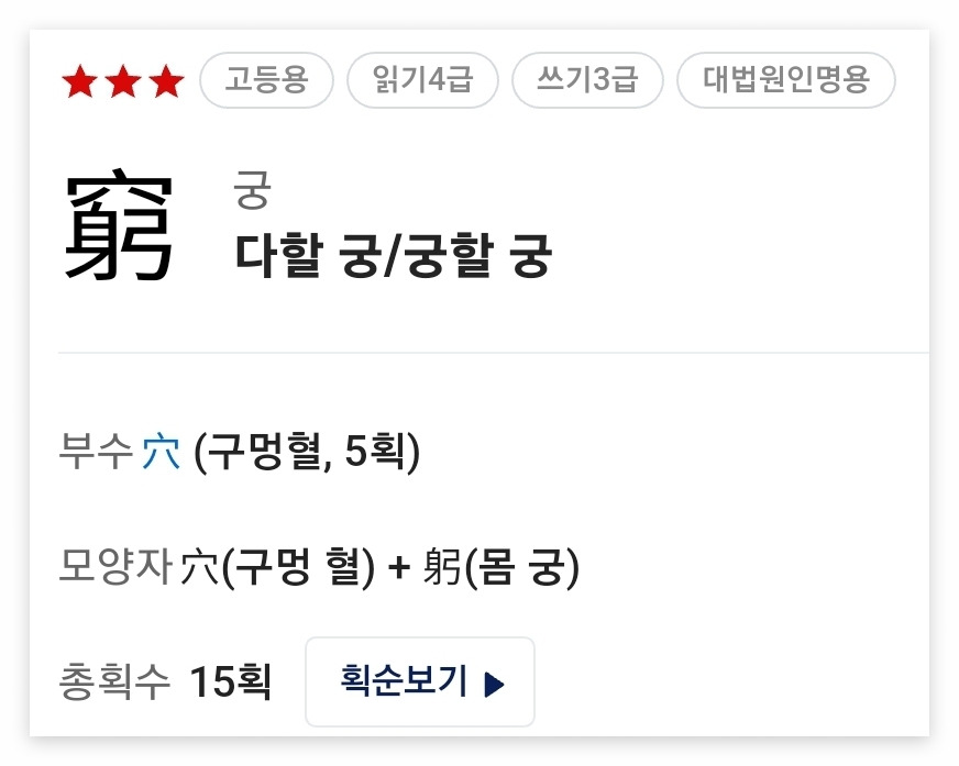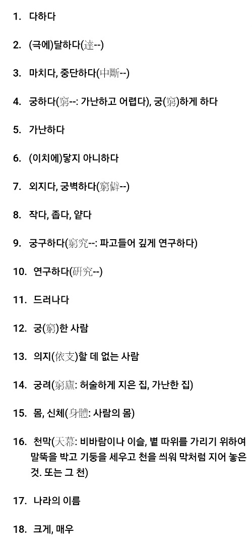 궁할 궁이라고 알고 있는 이 한자가 다할 궁이었다.