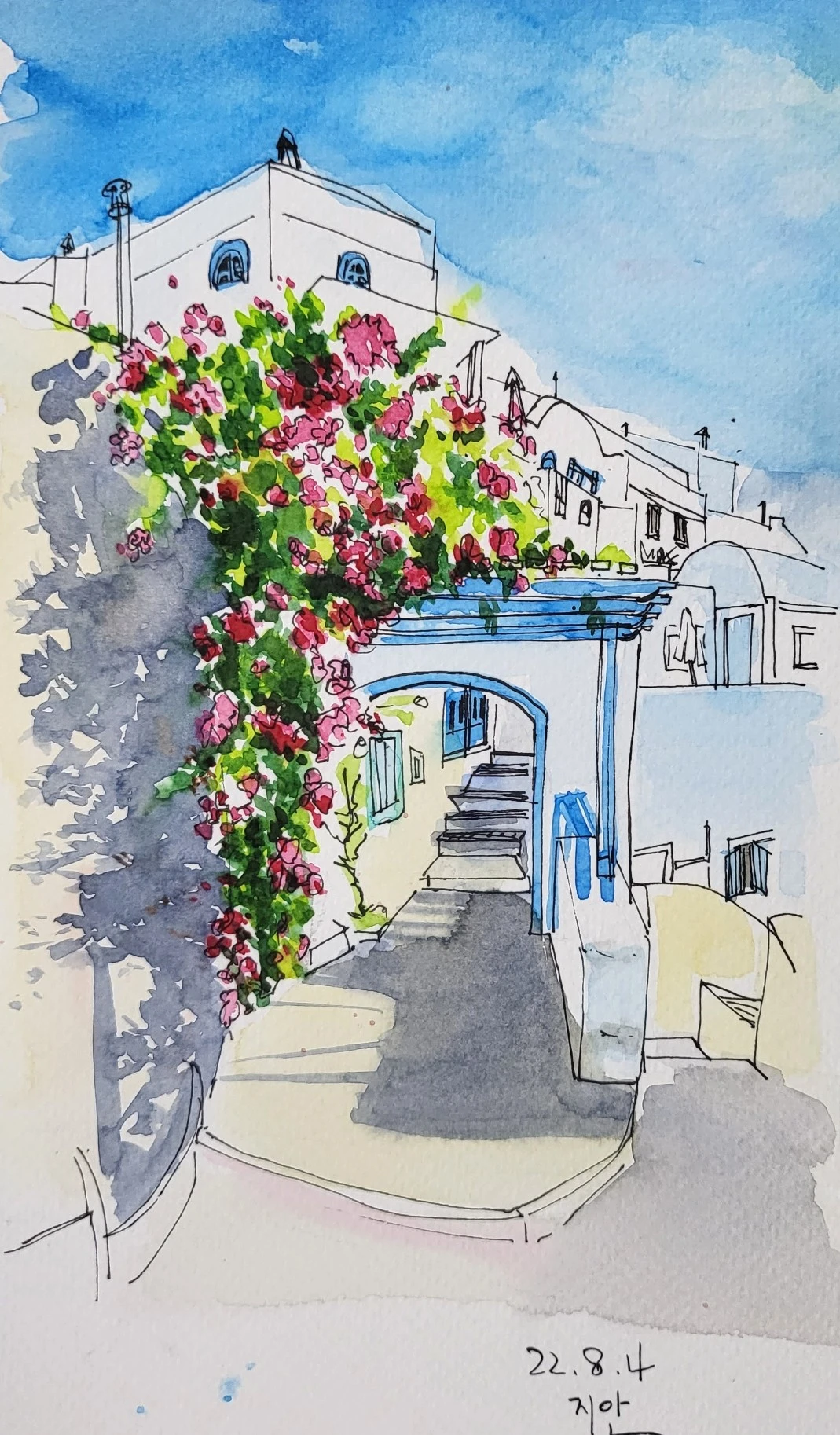5월부터 간간이 색연필, 오일 파스텔로 연습하다 6월부터 본격적으로 수채화를 시작했다. 연필로 스케치한 면을 알록달록한 색상으로 메꾸는 채색 작업이 참 매력적이었다.
