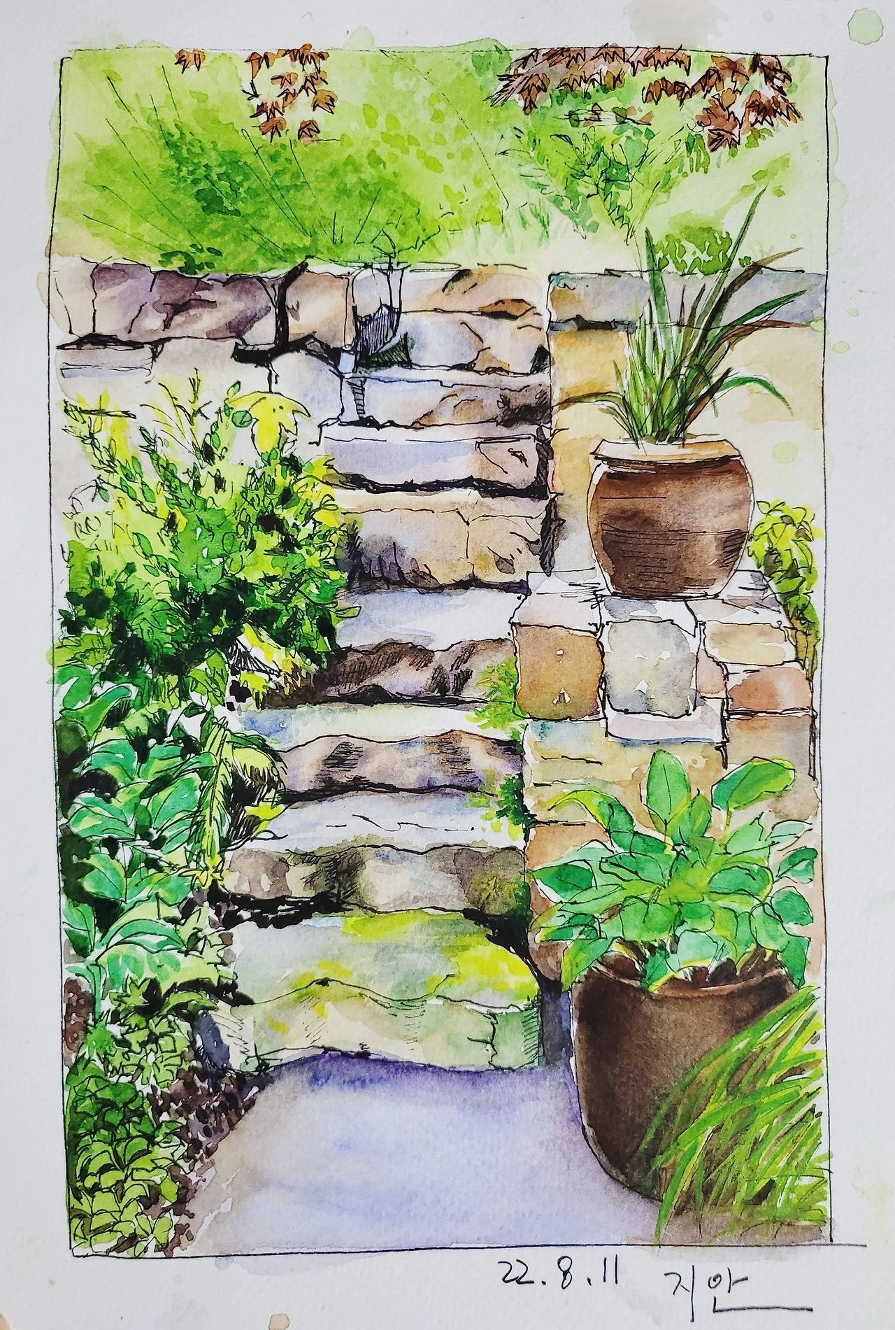 드로잉과 달리 틀리면 지우개로 감쪽같이 지울 수도 없고, 선택의 여지가 없는 검은 흑연색만 쓰는 것이 아니라 이름이 없는 아무개 색을 직접 만들어야 써야 한다. 30분이면 선긋기 연습도 하고 업로드할 드로잉 작품도 거뜬하게 나왔는데 수채화는 족히 3시간은 넘게 걸리니 체력적으로나 정신적으로 너무 버겁다.