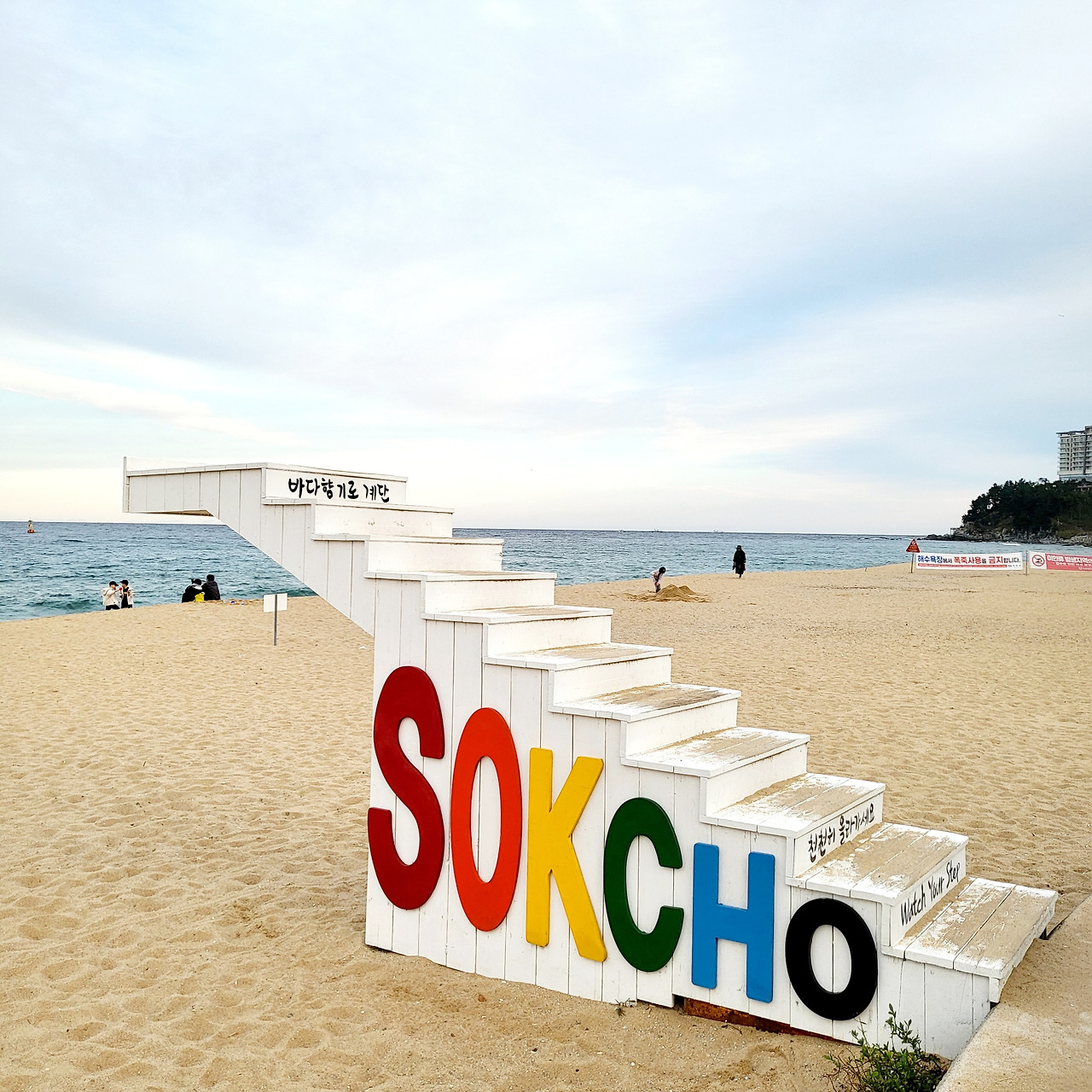 며칠 후, 40년 지기 베프의 깜짝 선물로 함께 떠난 여행은 감동과 힐링 그 자체였다.. 속초행 버스를 타기 위해 친구를 만나러 동서울역으로 가는 길은 한없이 설레었고, 그동안 못 나눈 이야기를 하다 보니 어느새 속초에 도착했다. 바닷가가 보이는 식당에서 식사를 하고, 호텔에서 짐을 풀고 우리는 해변으로 나가 소나무 숲과 바닷가를 걸었다. 해안선을 따라 소나무 숲을 걸으며 맡았던 건강한 솔향기가 몸과 마음이 다 치유되는 거 같다. 모래사장 위에 펼쳐져 있는 조각품들과 조형물들도 아기자기하고 예뻤다.
