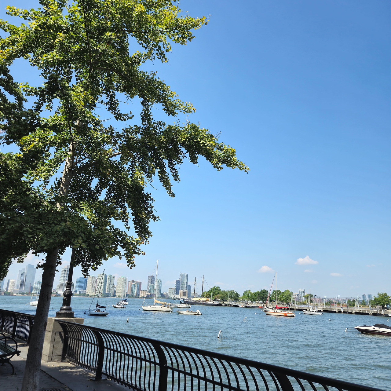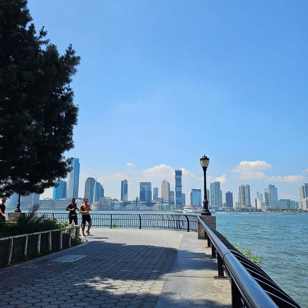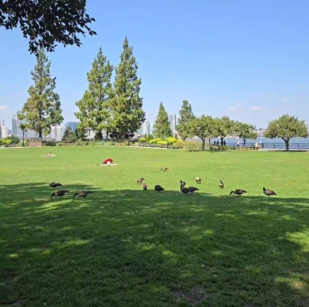 허드슨 리버파크에는 강변을 따라 달리고 걷는 사람들도 많았는데요. 깨끗하고 널찍한 산책길이 강가를 따라 쭈욱 펼쳐져 있습니다. 여름 끝자락, 가을 시작 이어서였을까요? 강바람은 산책하기 좋게 적당히 산들거렸고, 금빛 물결이 반짝였습니다. 자전거나 인라인스케이트를 타는 사람들, 구슬땀을 흘리며 달리기하는 등 저마다 평화롭게 시간을 보내고 있었습니다.