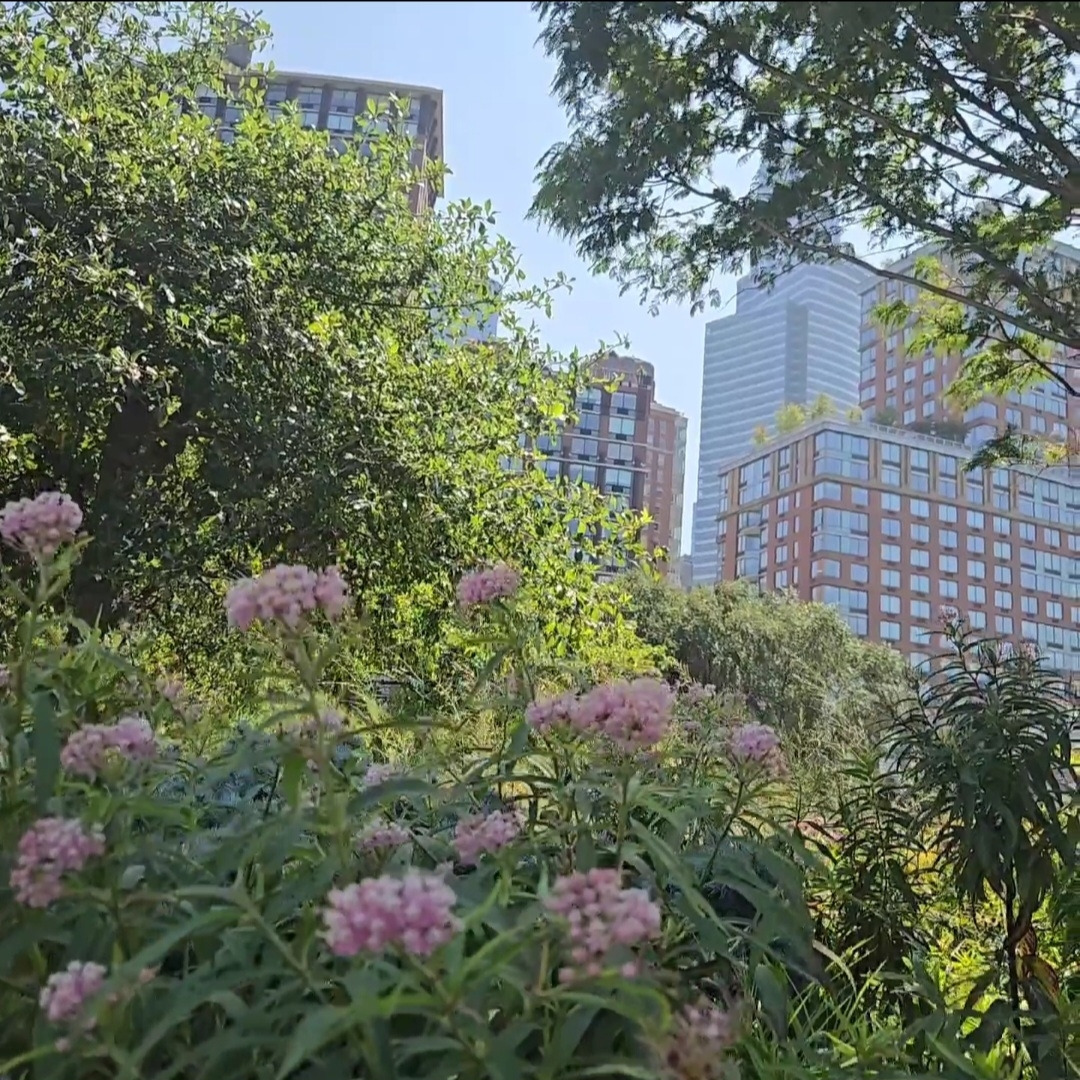 센트럴파크 다음으로 큰 규모를 자랑한다는 나무와 숲도 다양하고 싱그럽게 잘 가꾸어져 있었습니다. 나무 사이로 보이는 아파트들은 뉴욕에서 가장 비싼 고급 아파트들이라고 하는데요. 집안에서 허드슨강과 맨해튼이 시시각각으로 변하는 모습을 볼 수 있으니 얼마나 좋을까요? 초고가의 집들임에도 불구하고 자연과 잘 조화되어 호화스럽지도, 요란하지도 않아 인상 깊었습니다.
