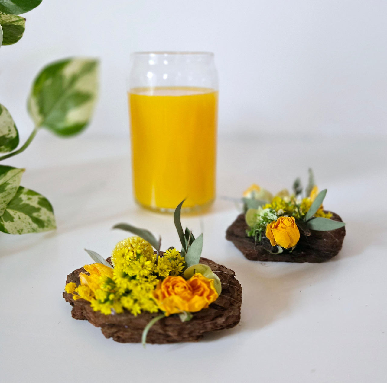 글쓰기 과제를 하며, 오랜만에 학창 시절을 떠올리니 참 따스했습니다. 절친의 얼굴도 떠오르고요. 집 앞 길바닥에 나무껍질 2개가 사이좋게 떨어져 있는 게 정겨워 꽃으로 장식했습니다. 그 시절, 늘 함께했던 시간을 생각하면서요.