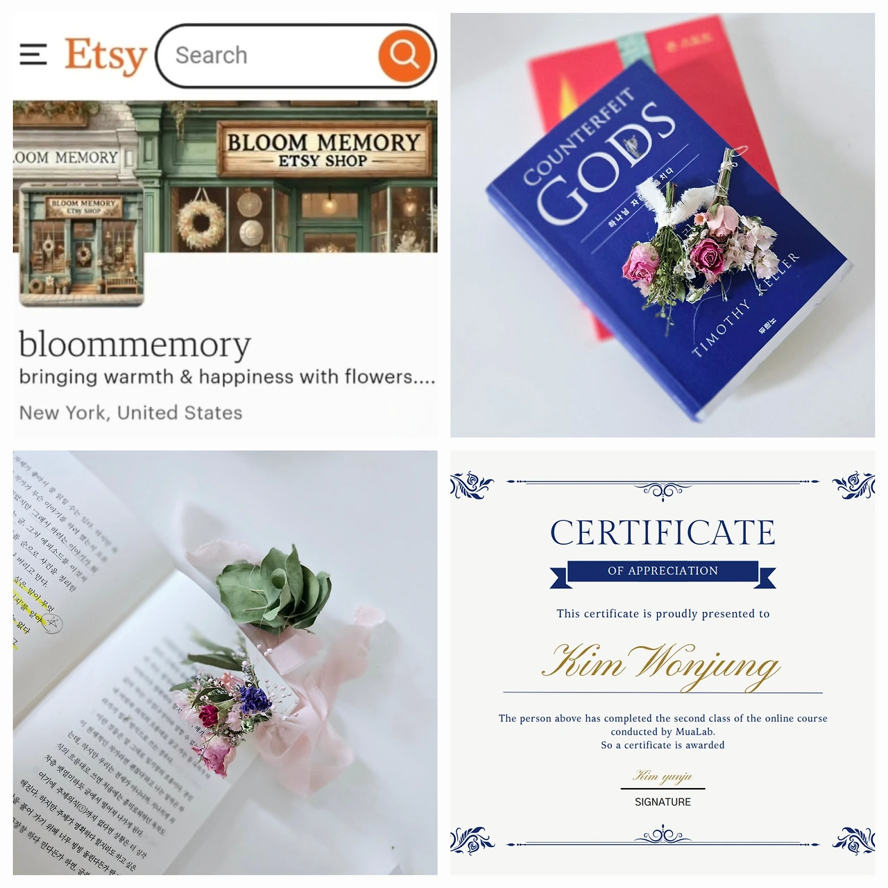 그중에서도 가장 큰 시도는 엣시에 온라인 샵을 여는 것이었다. 나의 브랜드를 세상에 내놓고 싶은 작은 꿈의 첫 발자국. 그러나 쉽지만은 않았다. 그동안 만든 드라이플라워 리스 사진을 찍고, 설명을 써서 업로드하는데만 몇 주가 걸렸다. IT에 밝으면, 쉽게 할 수 있었을 텐데. 작은 소품 하나 올리는데도 질문이 족히 서른 개는 넘었다.