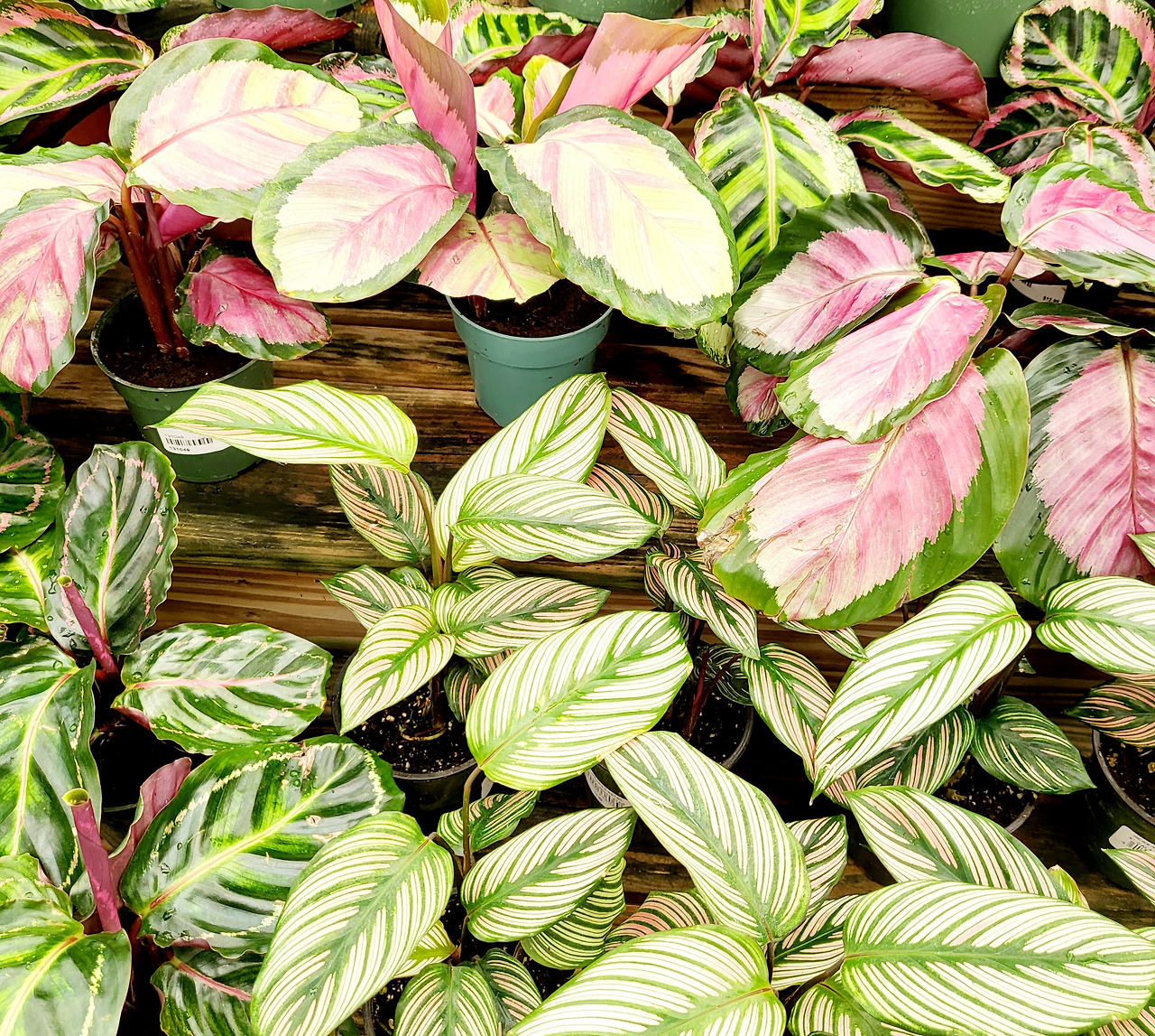 칼라데아는 화려하고 독특한 잎으로 어디 가나 시선을 한 몸에 받는 식물이다. 조각가가 무늬를 새겨놓은 듯한데 종류가 많고 저마다의 독특한 매력이 있어 선호하는 식물이기도 하다. 무엇보다 칼라데아의 신기한 점은 낮과 밤이 바뀌는 야누스 같은 모습이다. 낮에는 활짝 펼쳐져 있고 밤에는 오므라져 있어서 기도하는 식물이라는 애칭으로 불리고 있다.