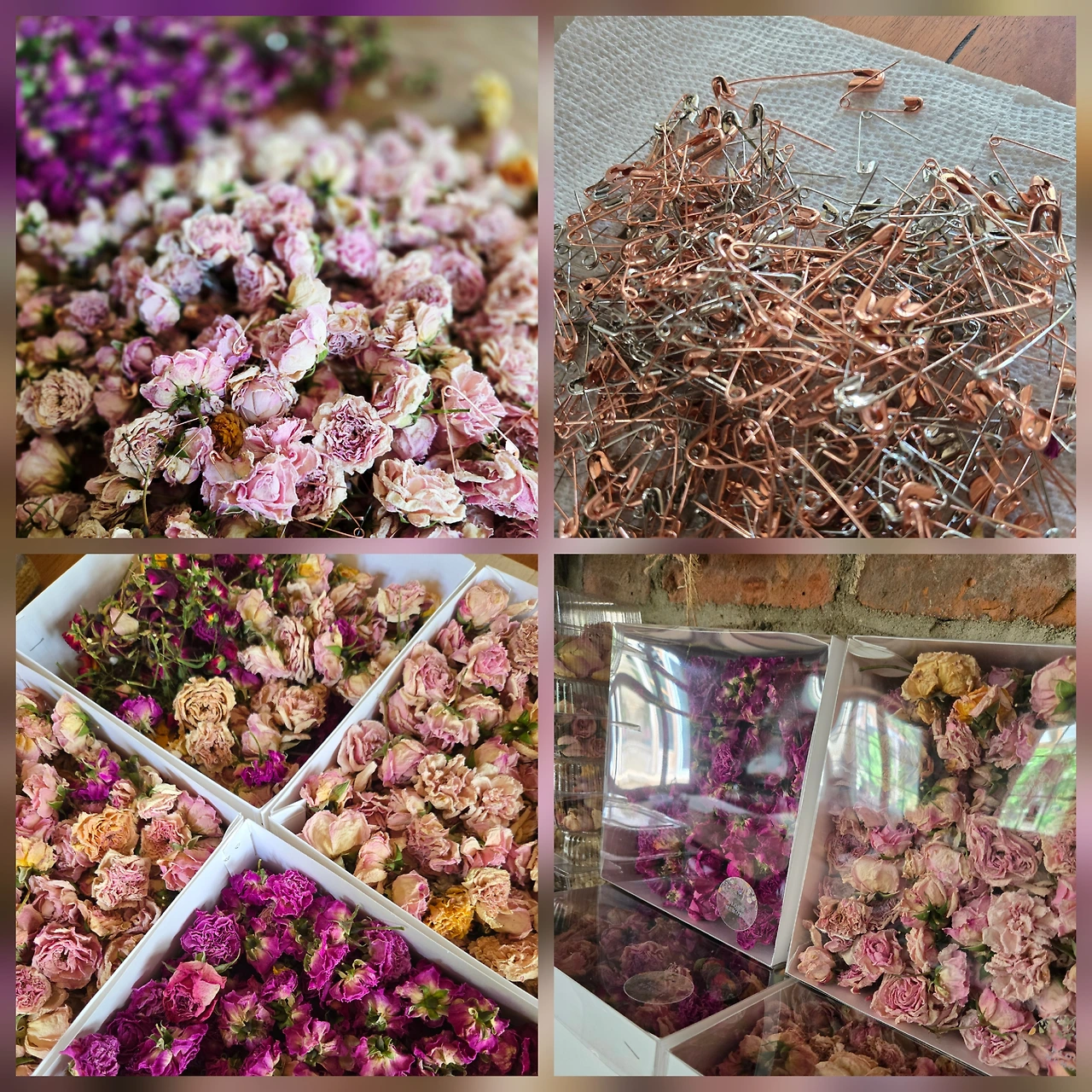 지난 토요일이었다. 차일피일 미뤄오던 말린 장미를 정리하기로 한 날이다. 그런데 매일 조금씩 옷핀에 고정해서 말린 장미가 무려 천 송이! 하루 100송이쯤, 2주 넘게 말렸으니 그럴 만도 했다. 하나하나 옷핀을 빼내기 시작하자 한숨이 절로 나왔다. '이걸 언제 다 하지?' 본의 아니게 주말을 온전히 장미에게 바칠 수밖에 없었다.