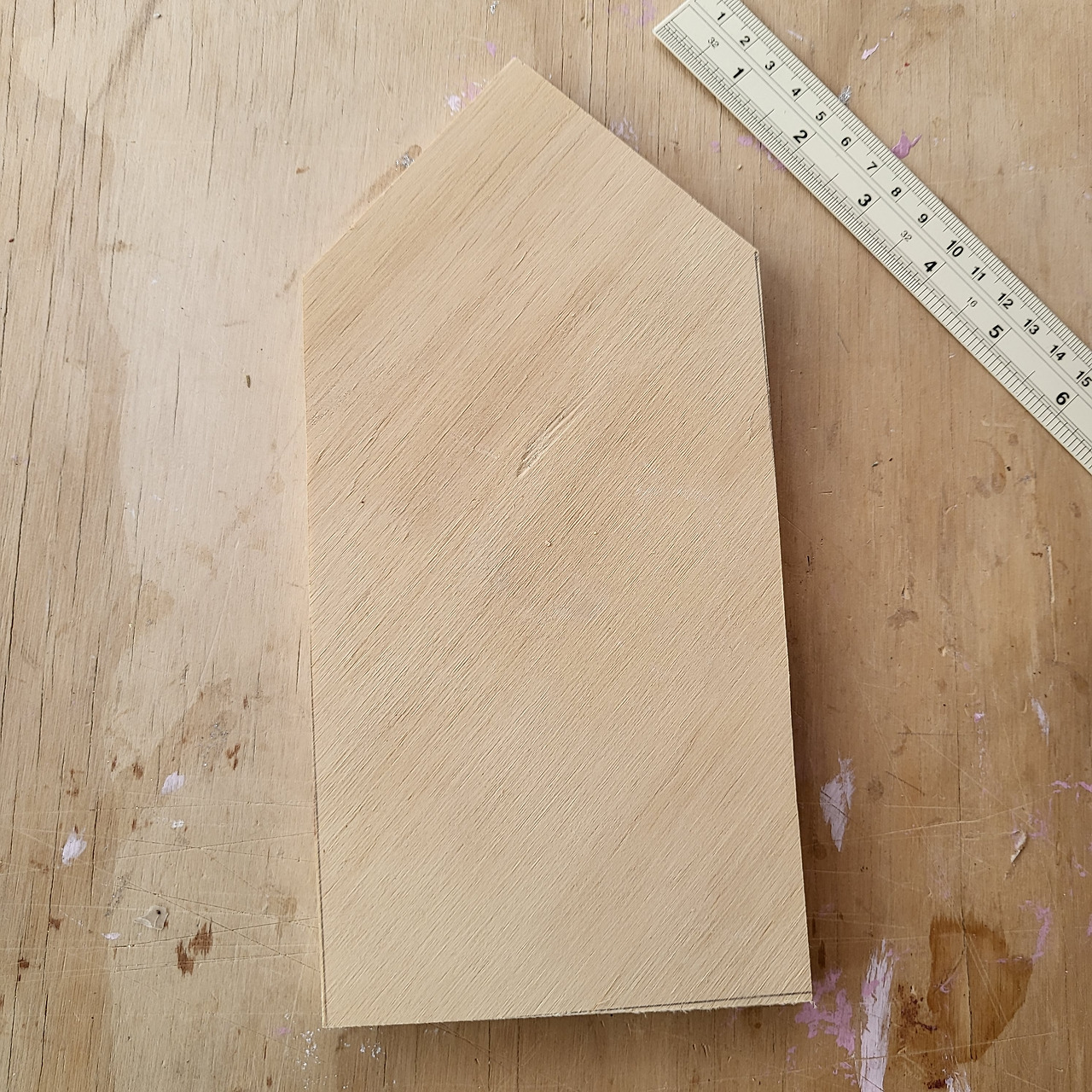 이번에 깨트린 페페 화분도 반쪽으로 두 동강이 나서 처음에는 쓸모가 없어 보였다. 그냥 버리려고 하다가 일단은 식물 작업실 한 쪽에 두고 지켜 보기로 했다. 며칠 오다가다 보니 언젠가 본 적이 있는 벽걸이 화분을 만들어 보면 좋겠다는 생각이 들었다. 바로 거라지에서 작은 나무판을 가지고 와서 집 모양의 바탕 판을 그리고 남편에게 부탁해서 재단을 했다.