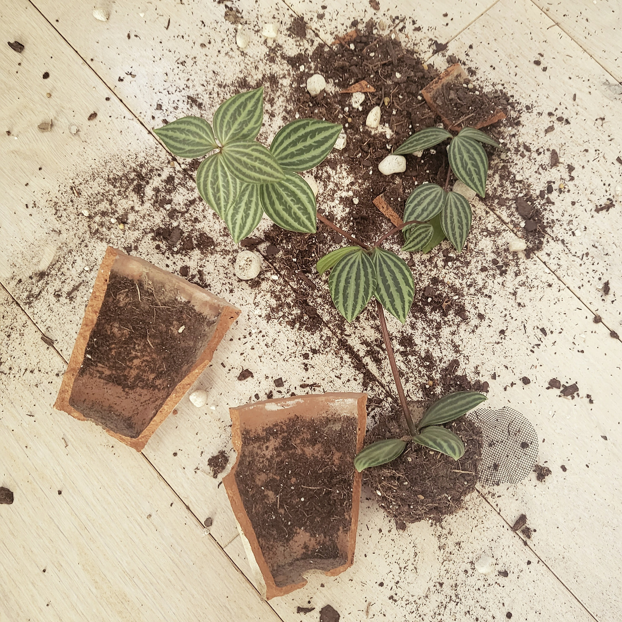 그런데 순간 화가 안 나고 웃음이 났다. 페페가 잎 하나 상하지 않고 바닥에 주저앉아있는 모습이 귀여워서였다. 흙이 거실 바닥 여기저기로 튀어서 청소하긴 좀 귀찮겠지만 예전처럼 심장이 두근거리고 떨리지는 않았다.