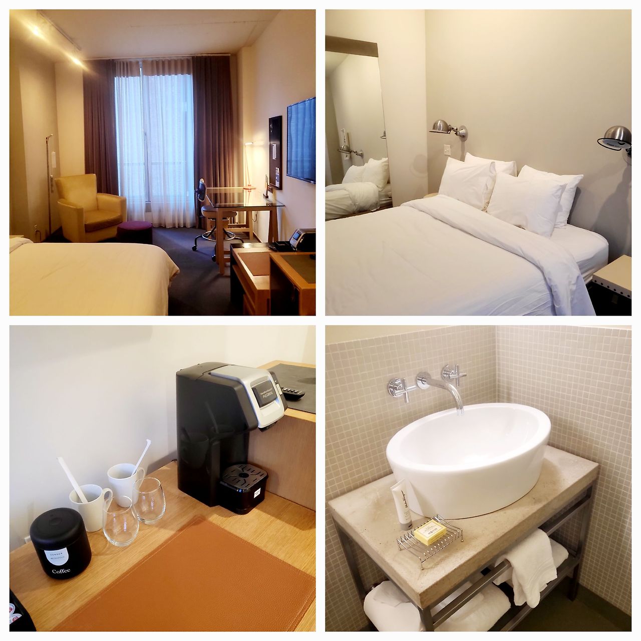 두툼한 줄입문을 열고 들어가면 가정집 같은 편안한 분위기의 로비가 나온다. 체크인하는데 처음 방문한 투숙객들에게 예쁜 병에 담긴 시원한 물을 서비스해줘서 첫인상이 좋았다. 안내해준 방으로 들어가니 깔끔하고 방크기도 작지 않았다. 꽤 큰 사이즈의 책상과 소파, 침대, 커피머신이 있고 욕실도 아주 깨끗하고 널직했다. 지하에는 운동시설이 있었고 아파트를 개조해서인지 전기아울렛이 많아 사용하기가 편리했다.