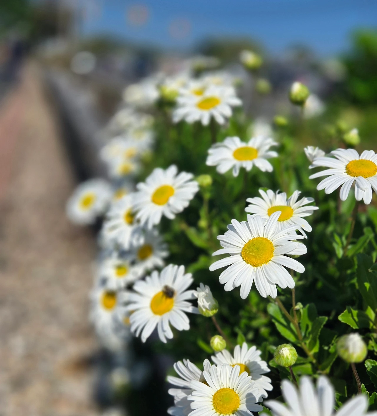 항구에 다다르자, 바닷바람이 살며시 얼굴을 스쳤다. 짭조름한 소금 냄새가 코끝을 간지럽히고, 물결 위로는 가을 햇살이 반짝이며 흩어졌다. 느끼고 싶었던 바로 그 분위기다. 바닷물이 맑고 푸르른 게, 마치 휴양지에 온 듯하다. 우리는 차를 세우고 '산책길' 팻말을 따라 꽃길로 만들어진 해안선을 걸었다. 바다와 꽃이 함께 보이는 길이 더 이상 아름다울 수는 없을듯싶었다.