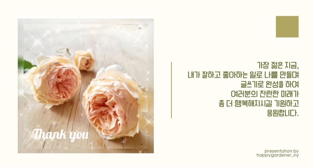 아침인 데다 연습을 많이 한 탓인지 목소리가 약간 갈라졌다. 따뜻한 물을 한 모금 마시고 줌을 켰다. 라이브15분전에 연사들끼리 모여 간단한 인사를 하고 제시간이 되자 줌으로 모르는 분들이 한두 분씩 들어오기 시작했다. 그동안 열심히 연습한 나를 믿으며 편하게 즐기면서 하자고 스스로를 다독였다. 다른 연사분의 이야기도 재미있게 잘 듣고 내 순서가 되자 신기하게 하나도 떨리지 않고 차분하게 했다. 마지막 페이지까지 하고 감사 인사를 나누니 새로운 도전을 무사히 끝냄에 뭔지 모를 뿌듯함까지 느껴졌다.